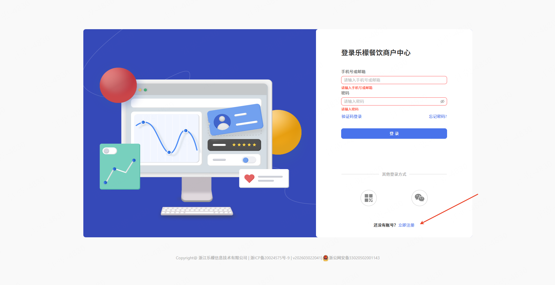 👉【操作路径】:①输入后台网页地址-②点击立即注册去注册账号