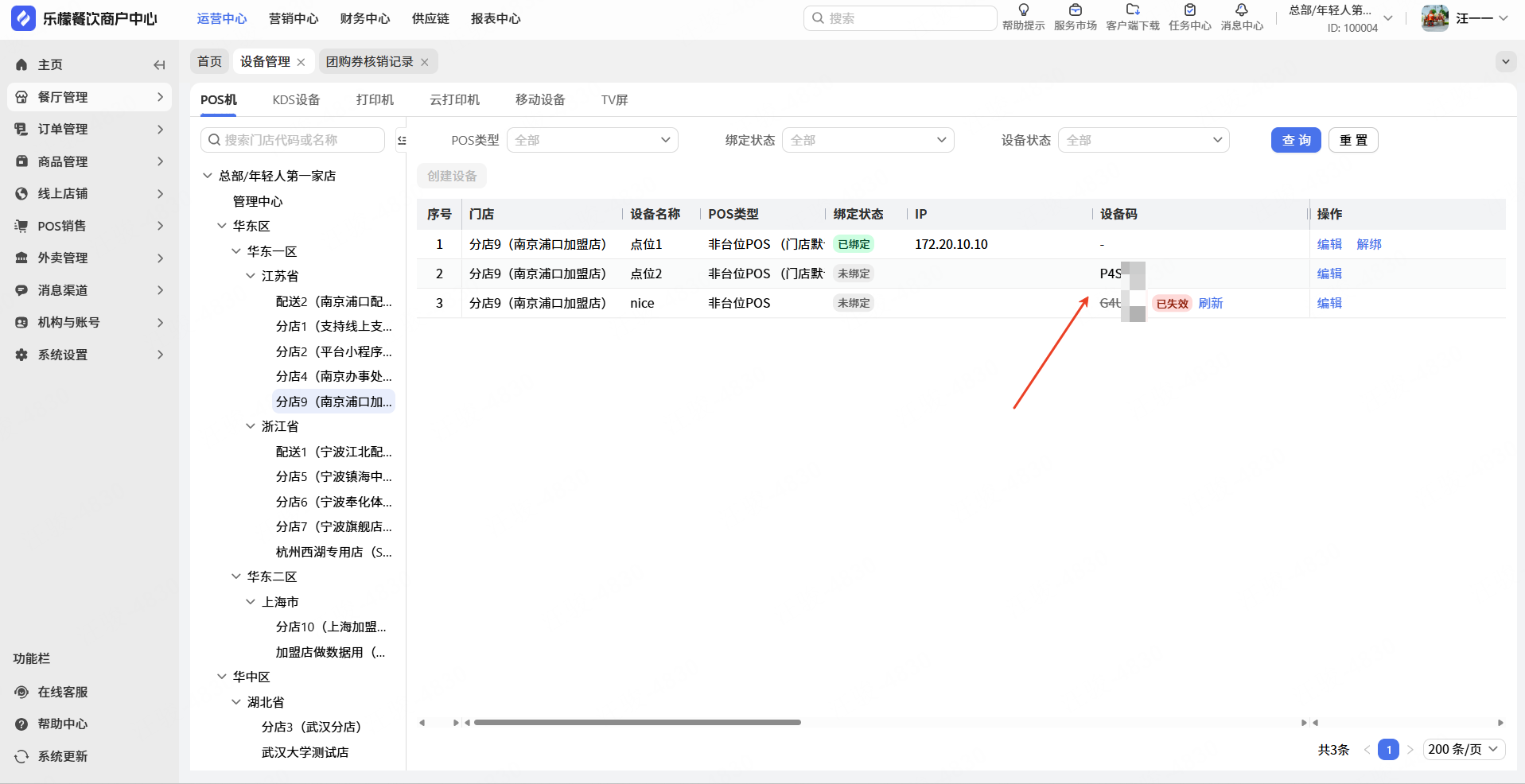 👉【操作路径】:输入设备码,可在后台设备管理中查看设备码