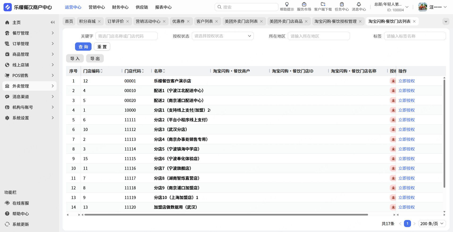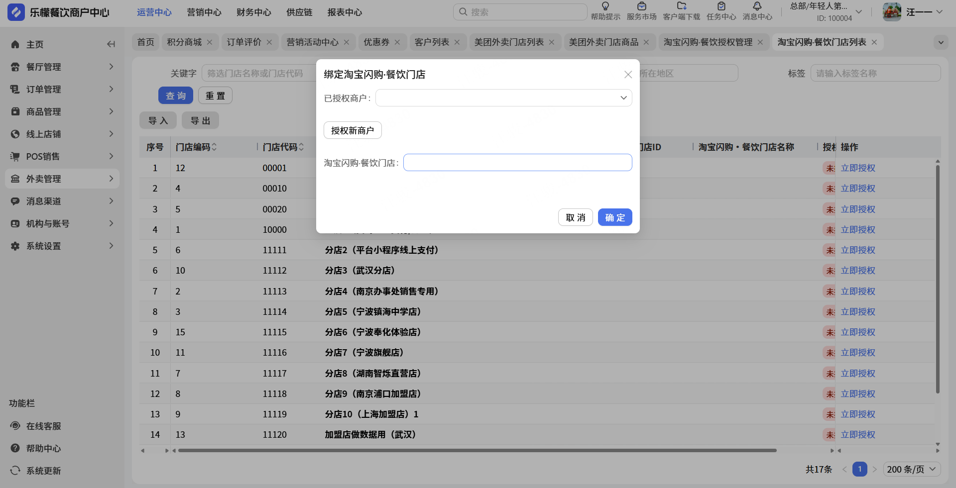 👉【操作路径】:1.点击门店列表 - 2.点击立即授权 - 3.选择已授权商户 - 4.填写淘宝闪购门店名称 - 5.点击确定