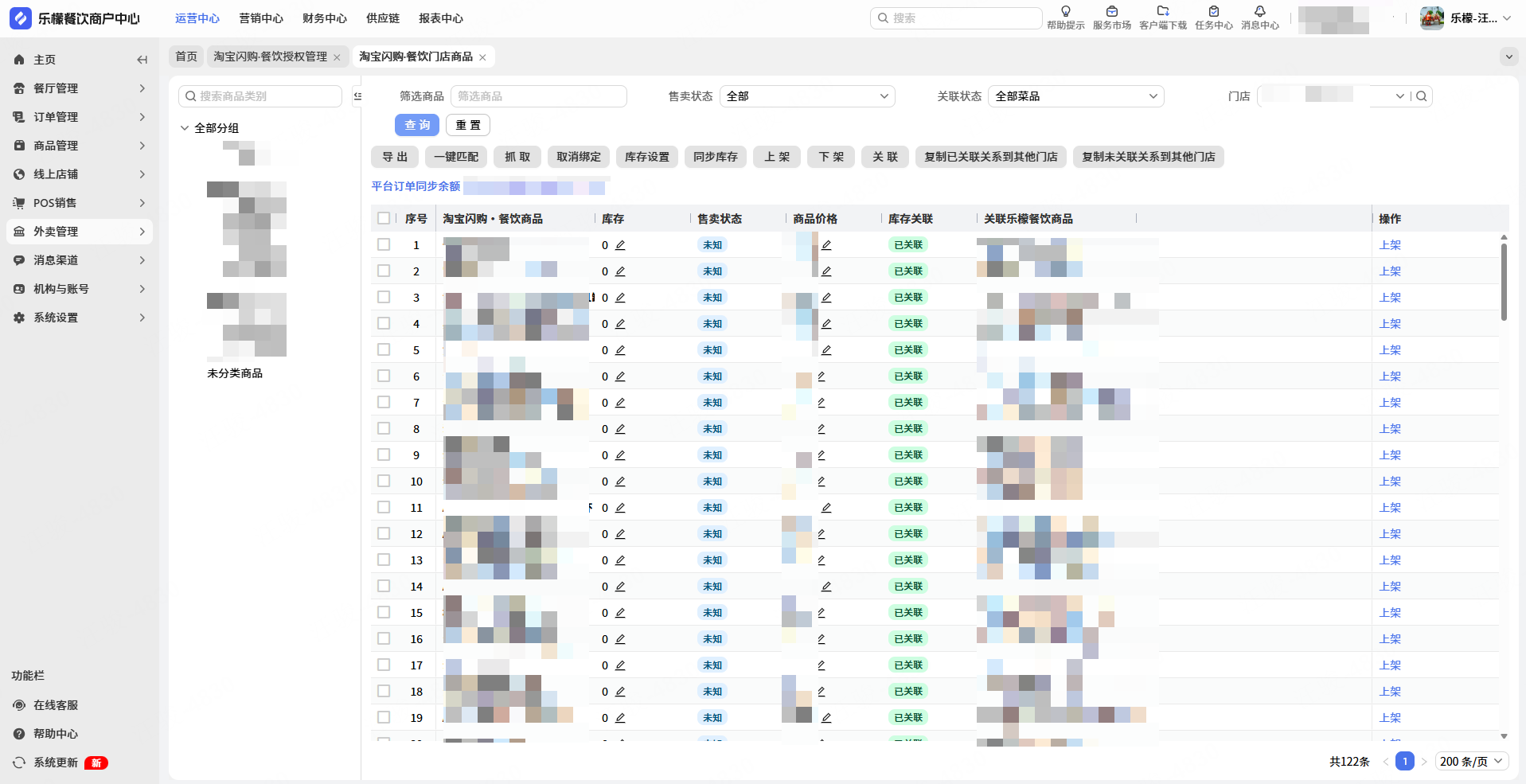 如需实现库存同步功能,在淘宝闪购外卖的门店商品下 该商品必须处于库存已关联状态下
