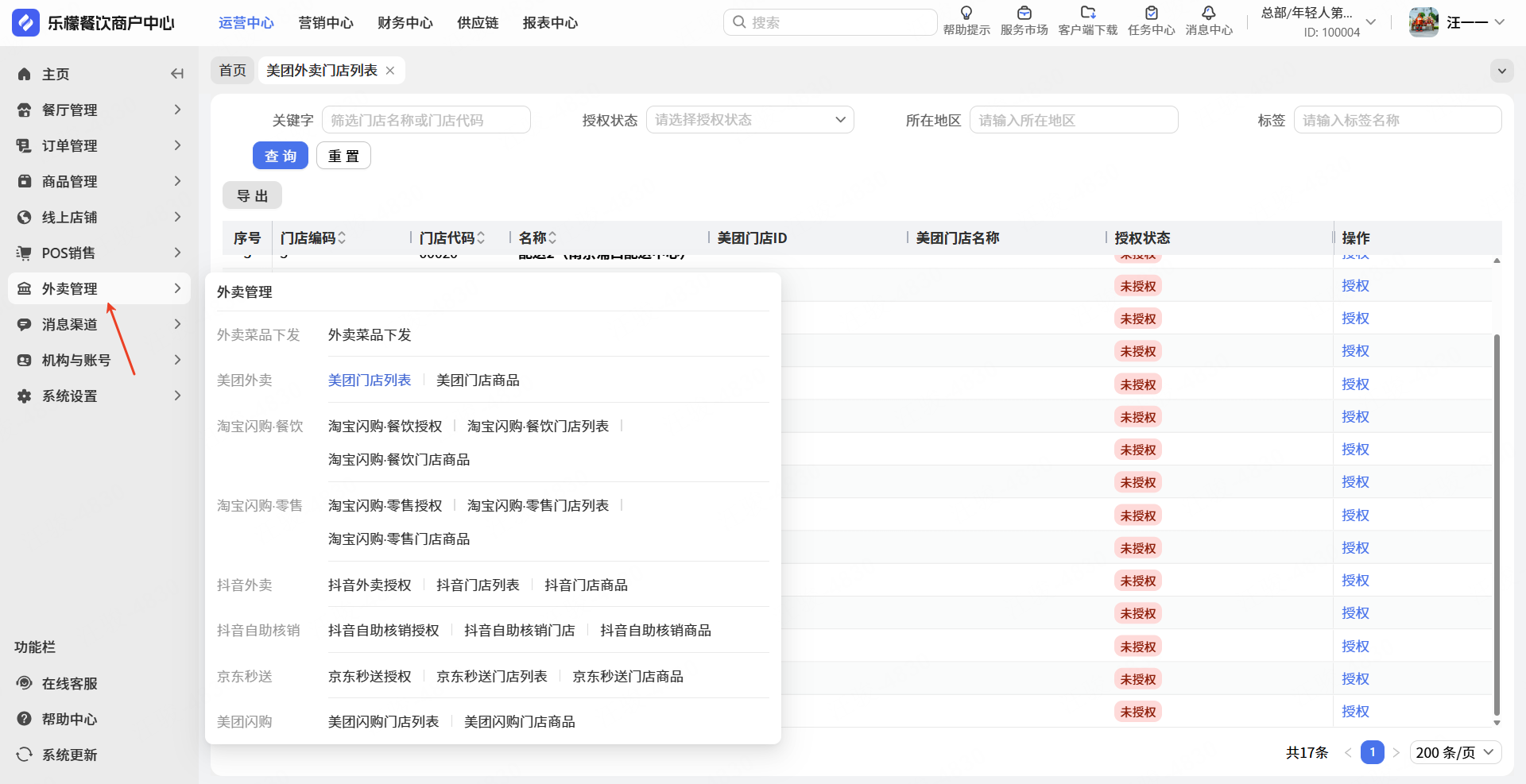 👉【输入步骤】: 外卖管理-点击美团外卖/淘宝闪购.餐饮