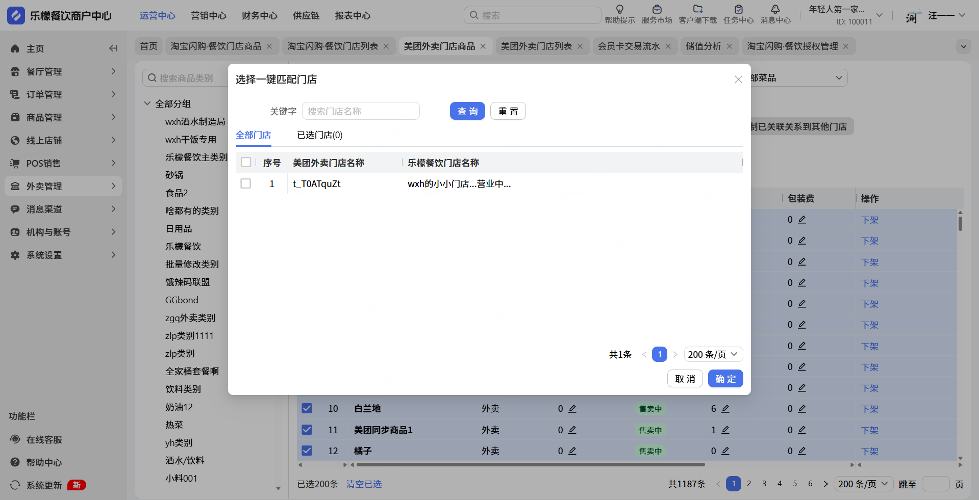 👉【操作路径】:打开WEB端,依次点击:点击美团外卖/淘宝闪购.餐饮①门店商品-②一键匹配-③勾选需要匹配的信息-④点击确定