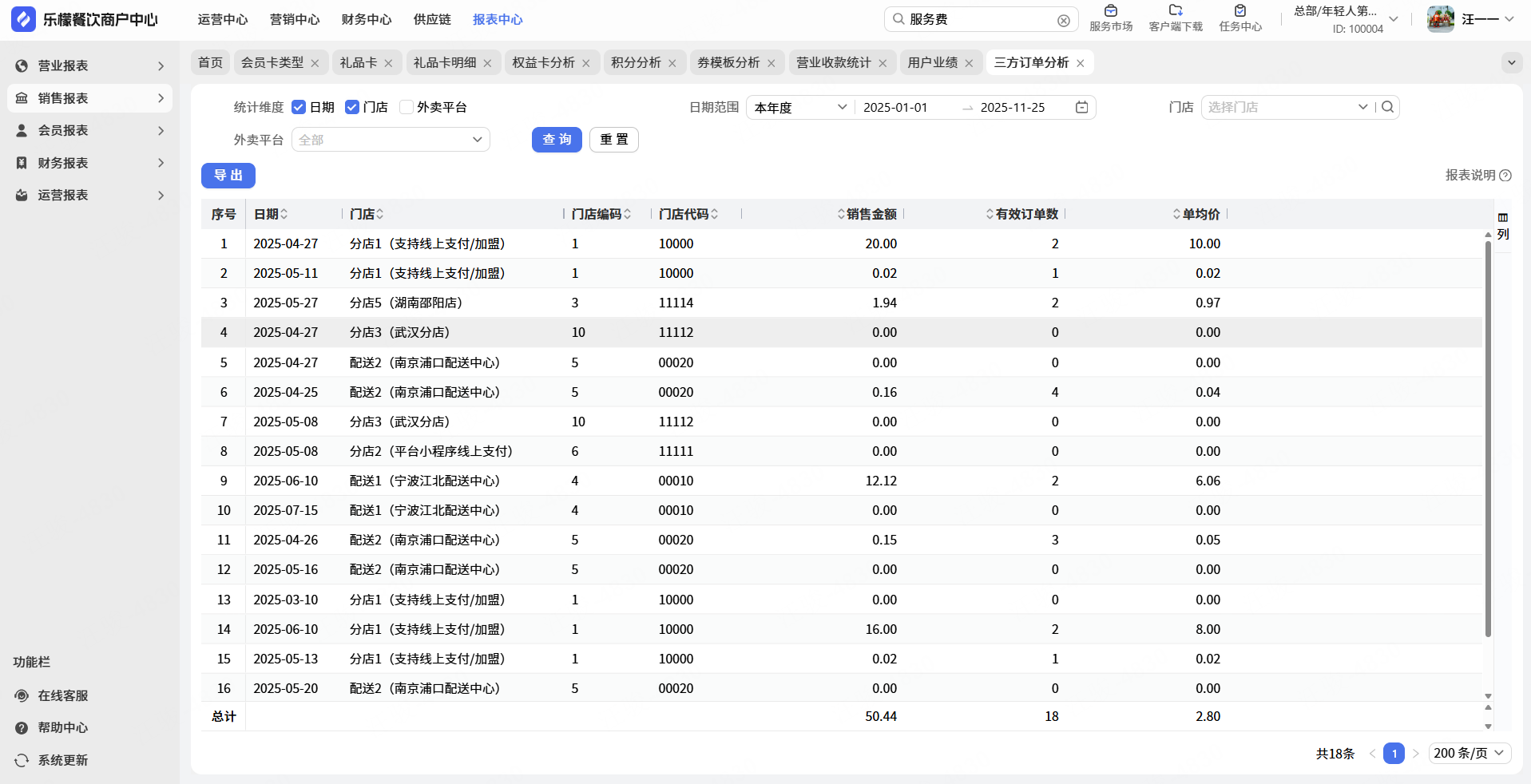 👉【操作路径】:①报表中心-销售报表-三方订单分析②自主筛选日期店铺等条件-③查看三方订单相关数据