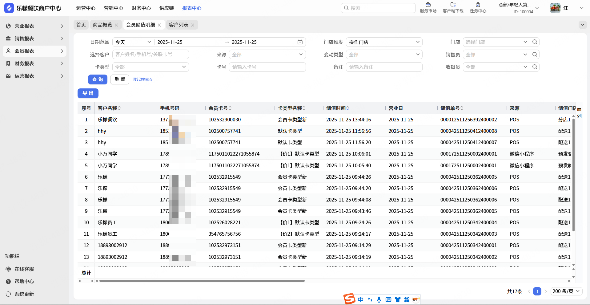 如您想要了解店内每月或者某一天全部客户或者某个客户的储值明细情况