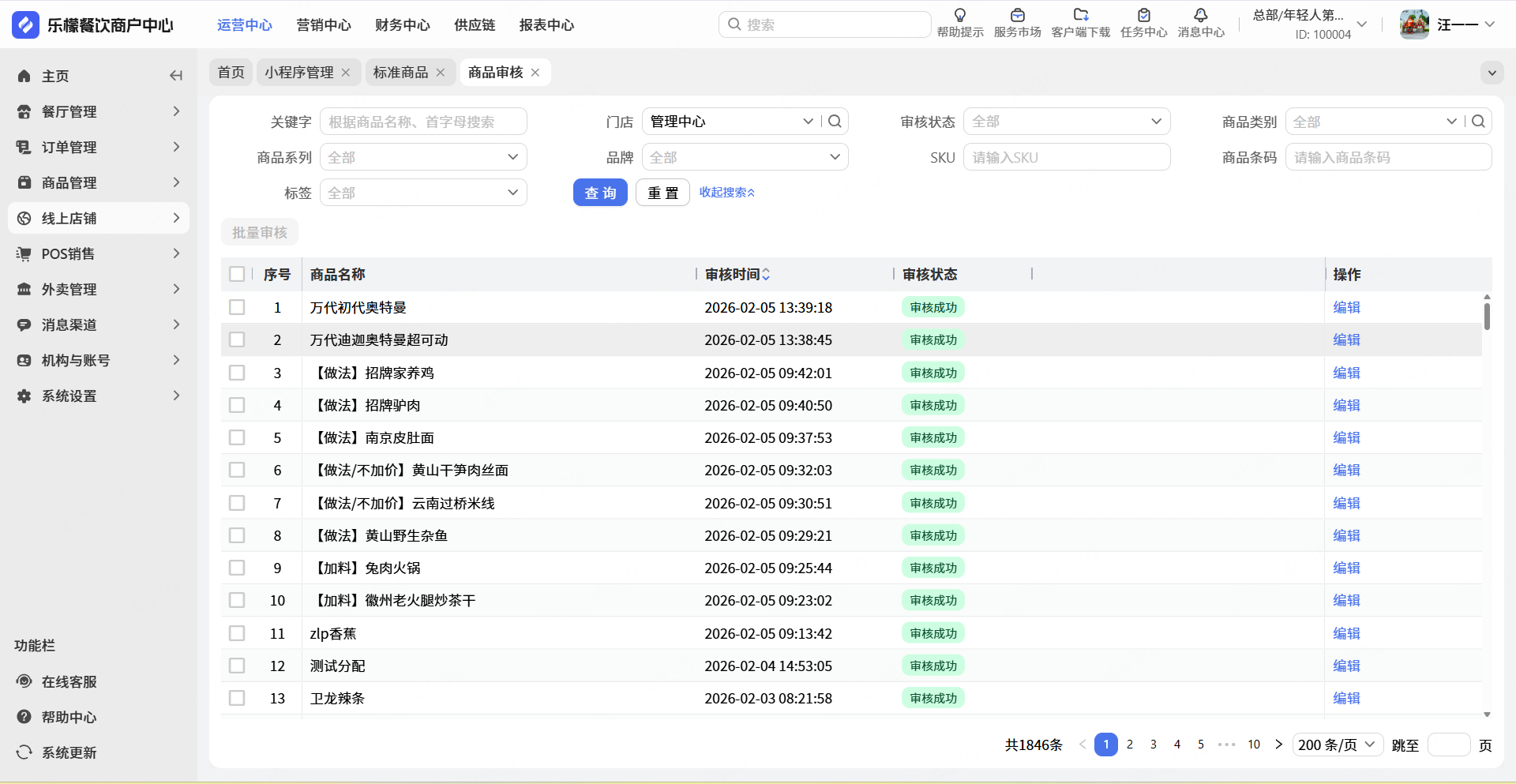 👉【操作路径】:依次点击①平台小程序-②商品审核-③查看审核结果