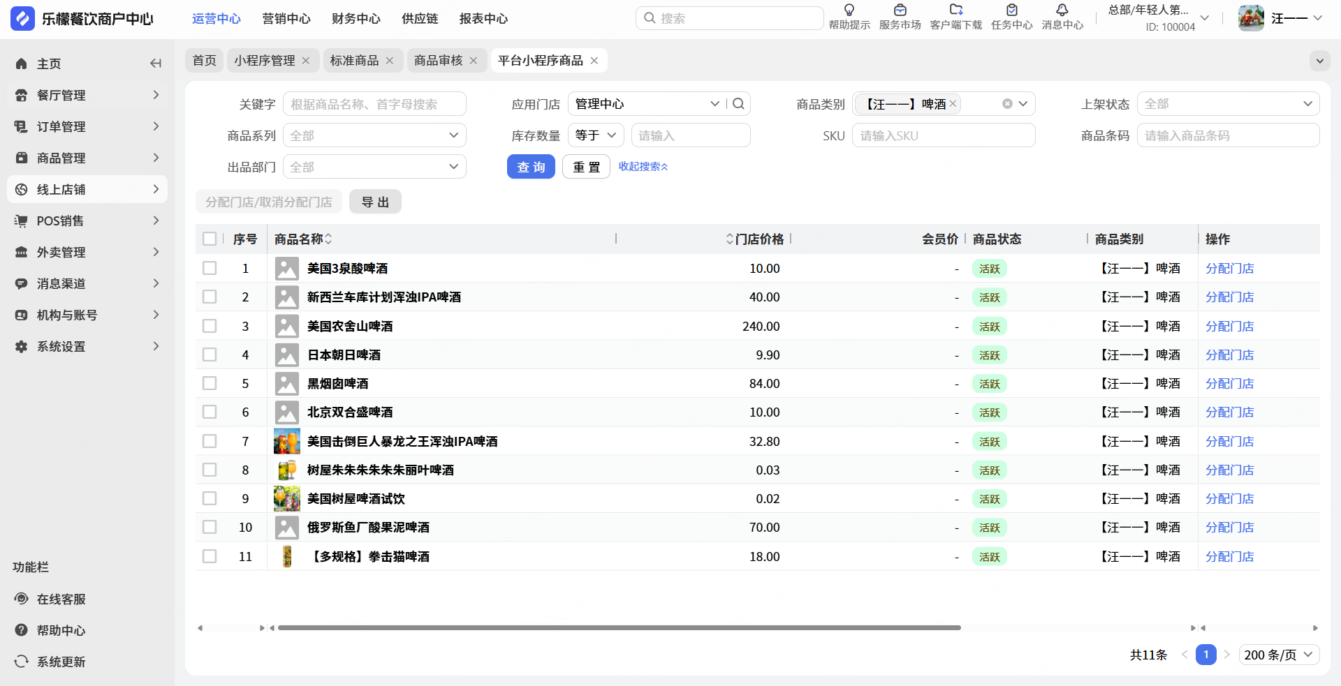 ①平台小程序展示门店指定商品
