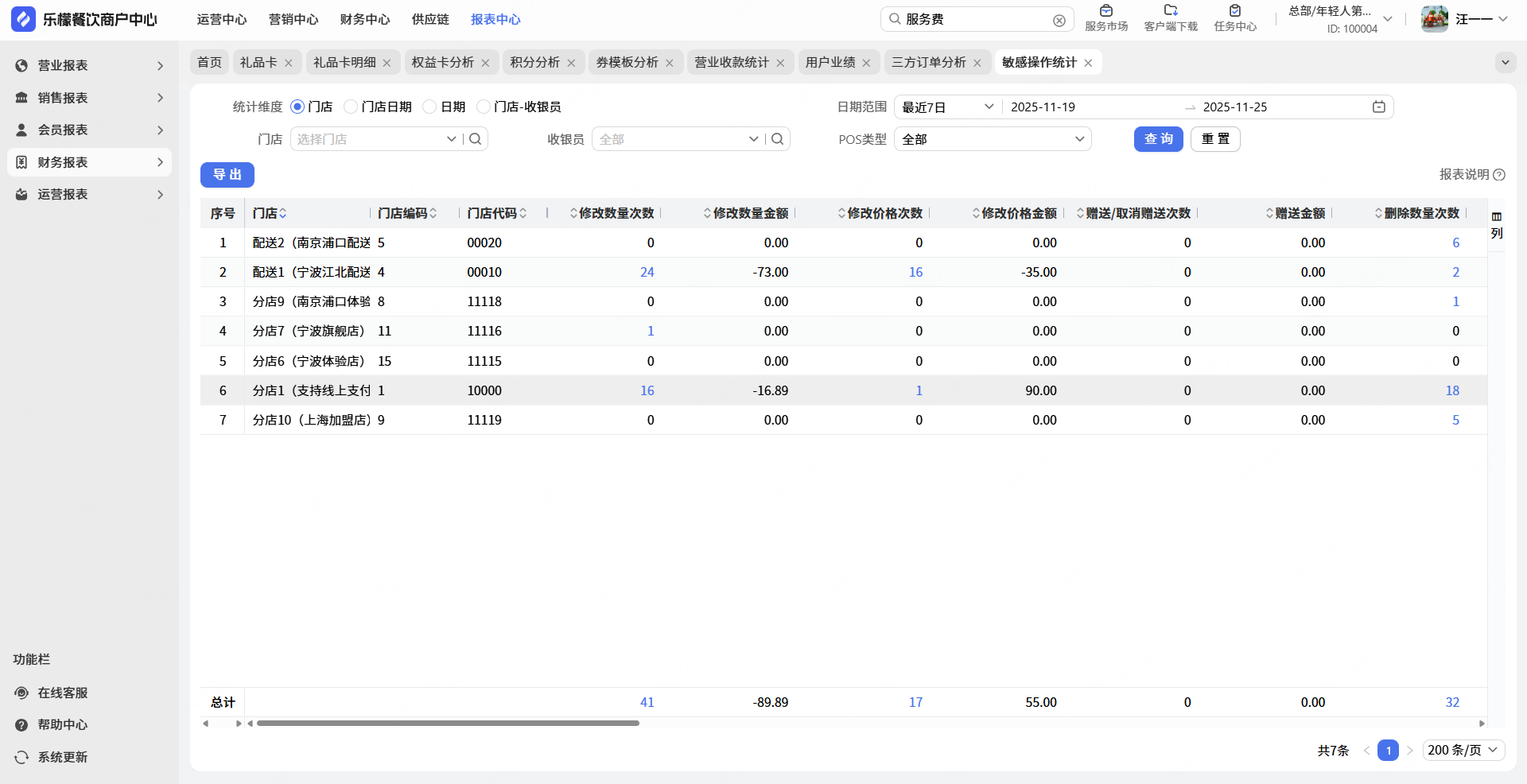如您想要了解店内每月或者某一天敏感操作情况数据