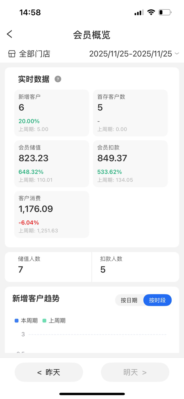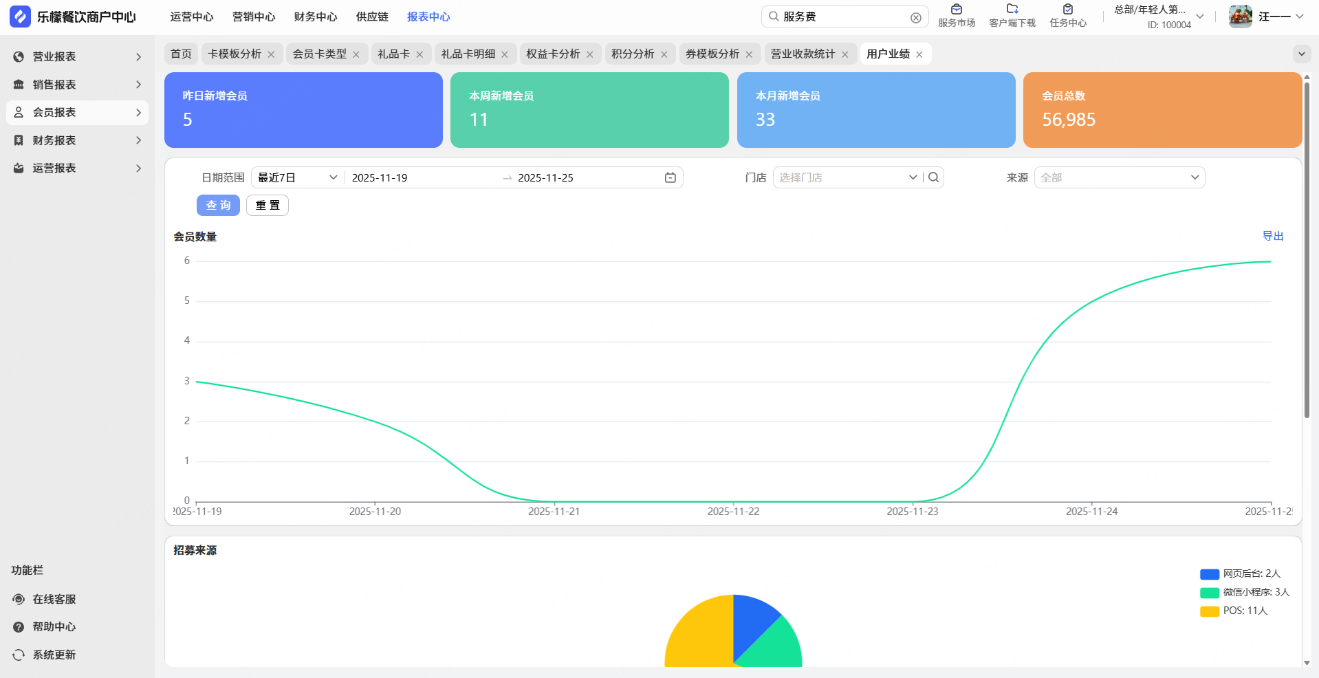 如您想要了解店内会员总数、日增量、周增量、月增量等数据,以及查看会员数量的增长趋势、会员的招募来源、门店排行