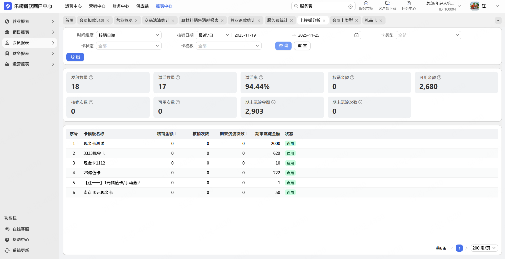 如您想要了解店内目前的卡模板,及其核销金额次数等。