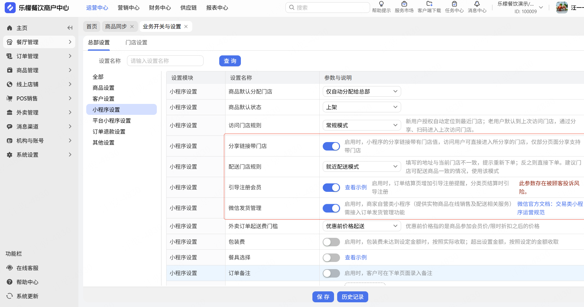 默认门店规则、引导注册、微信发货管理