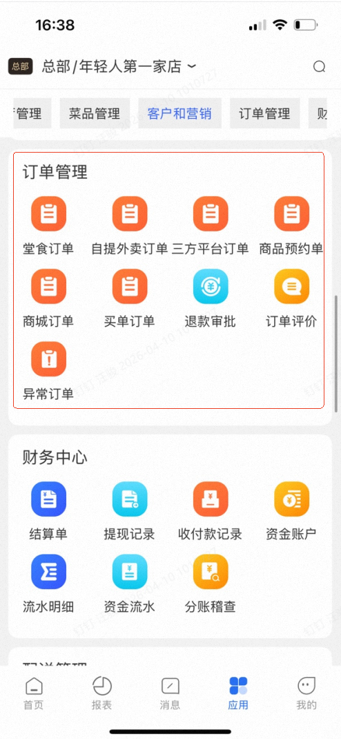 打开手机APP【乐檬餐饮管家】点击应用,订单管理。
