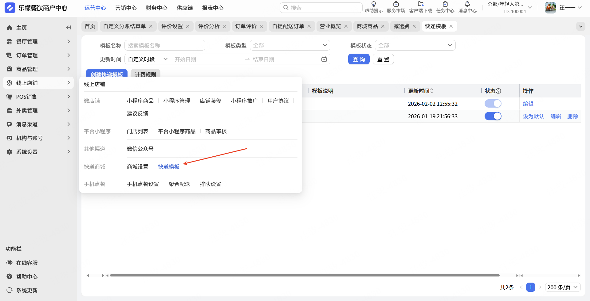 设置快递模板