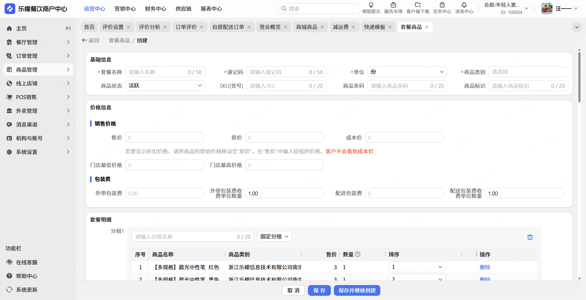 二、创建套餐:使用乐檬餐饮-WEB后台