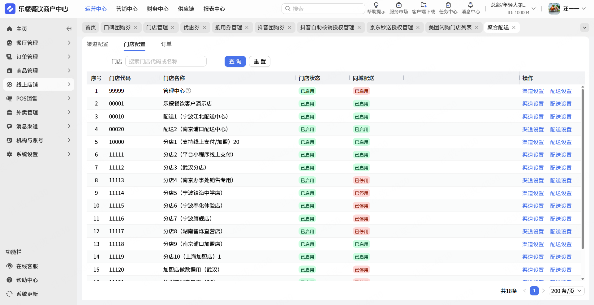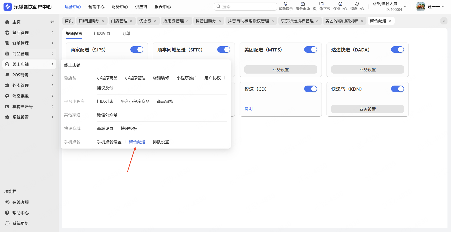 👉【操作路径】: 点击“聚合配送”点击”门店设置”