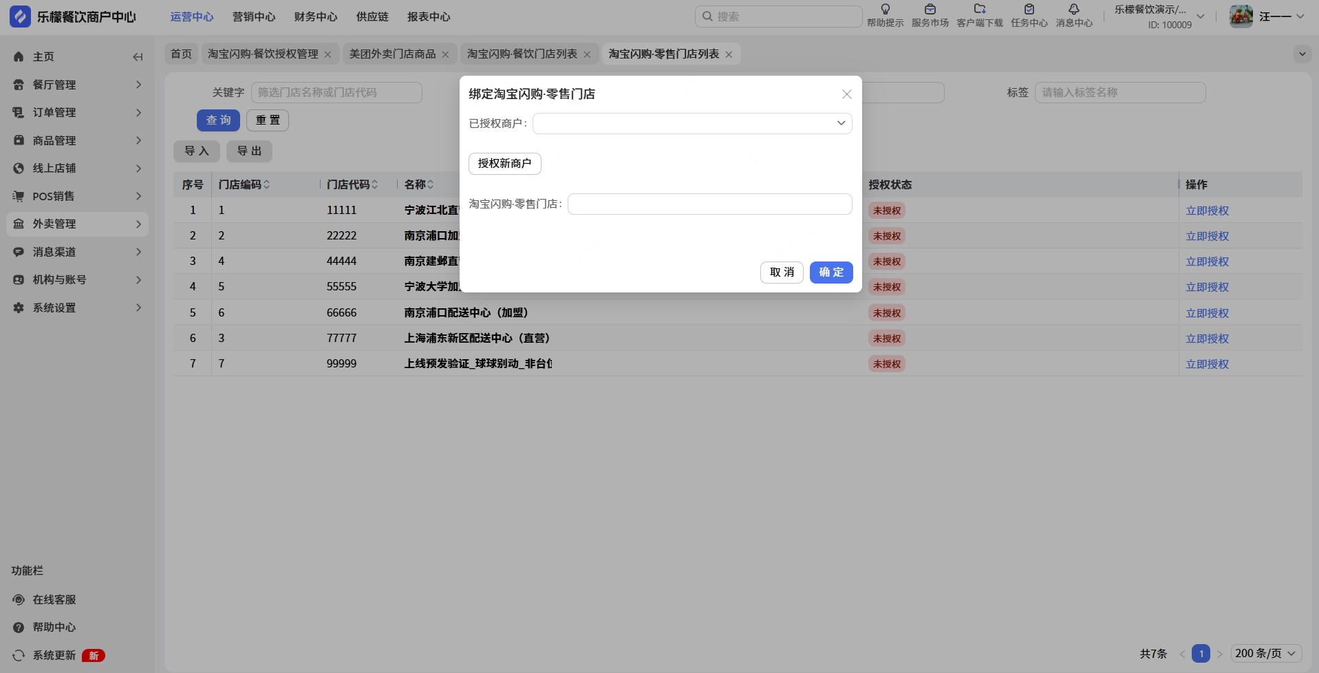 👉【输入步骤】:门店列表进行绑定(淘宝闪购.零售门店处输入上方绑定界面查询出来的门店id)