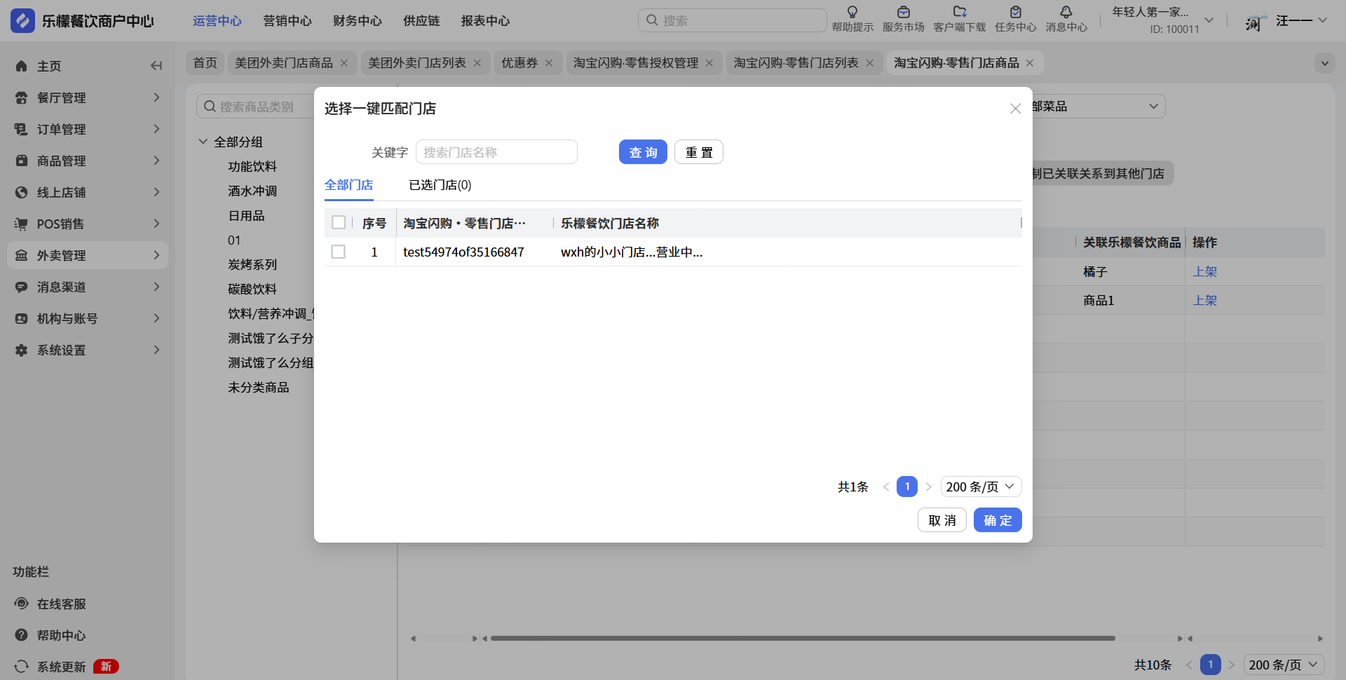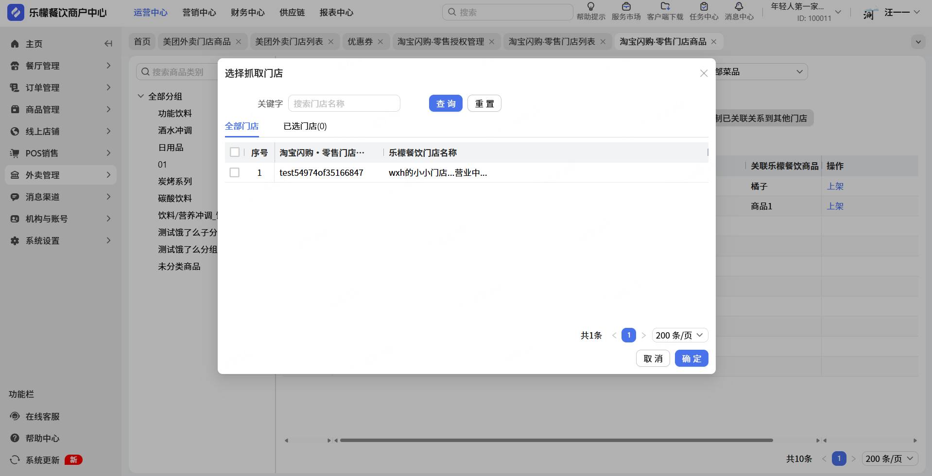👉【输入步骤】:选择对应门店-点击确定 即可抓取到淘宝闪购.零售平台新录的商品信息到门店商品里面