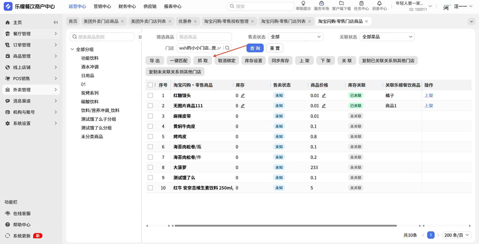 👉【输入步骤】:门店商品抓取后并刷新