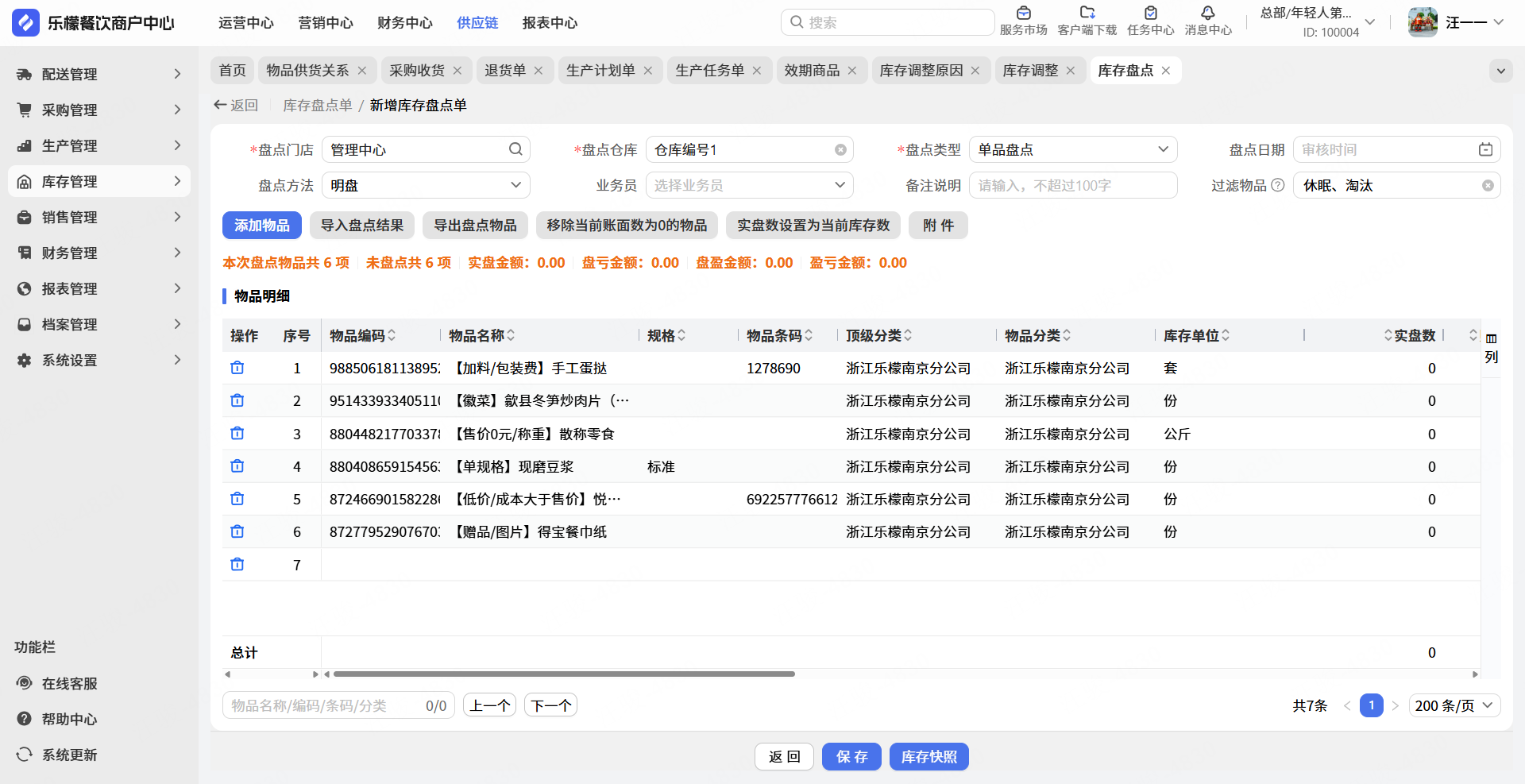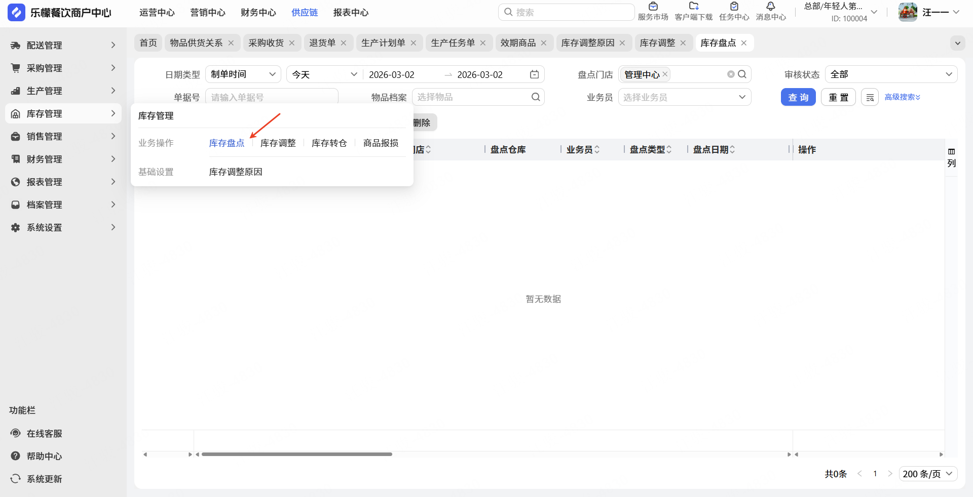 如您想要核对系统库存和门店实际数据是否一致,如不一致创建盘点单,调整系统库存。例如:系统库存可乐有5瓶,门店实际库存3瓶,创建盘点单审核通过后可调整系统库存与门店实际库存一致。