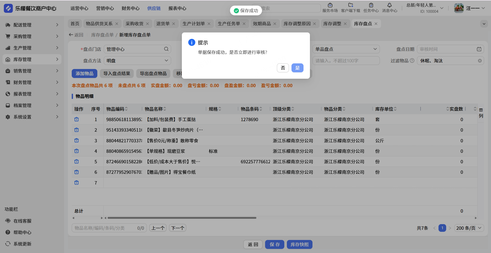 👉【盘点效果】:当前库存按照盘点库存输入。
