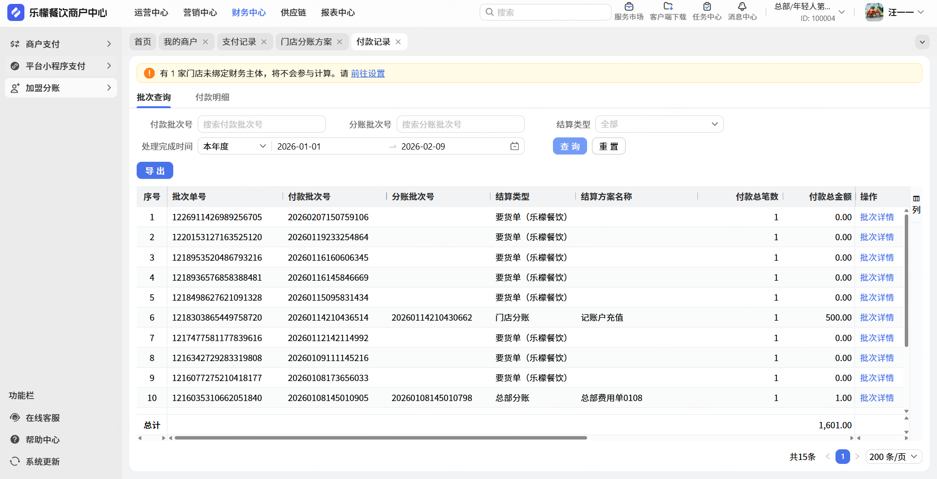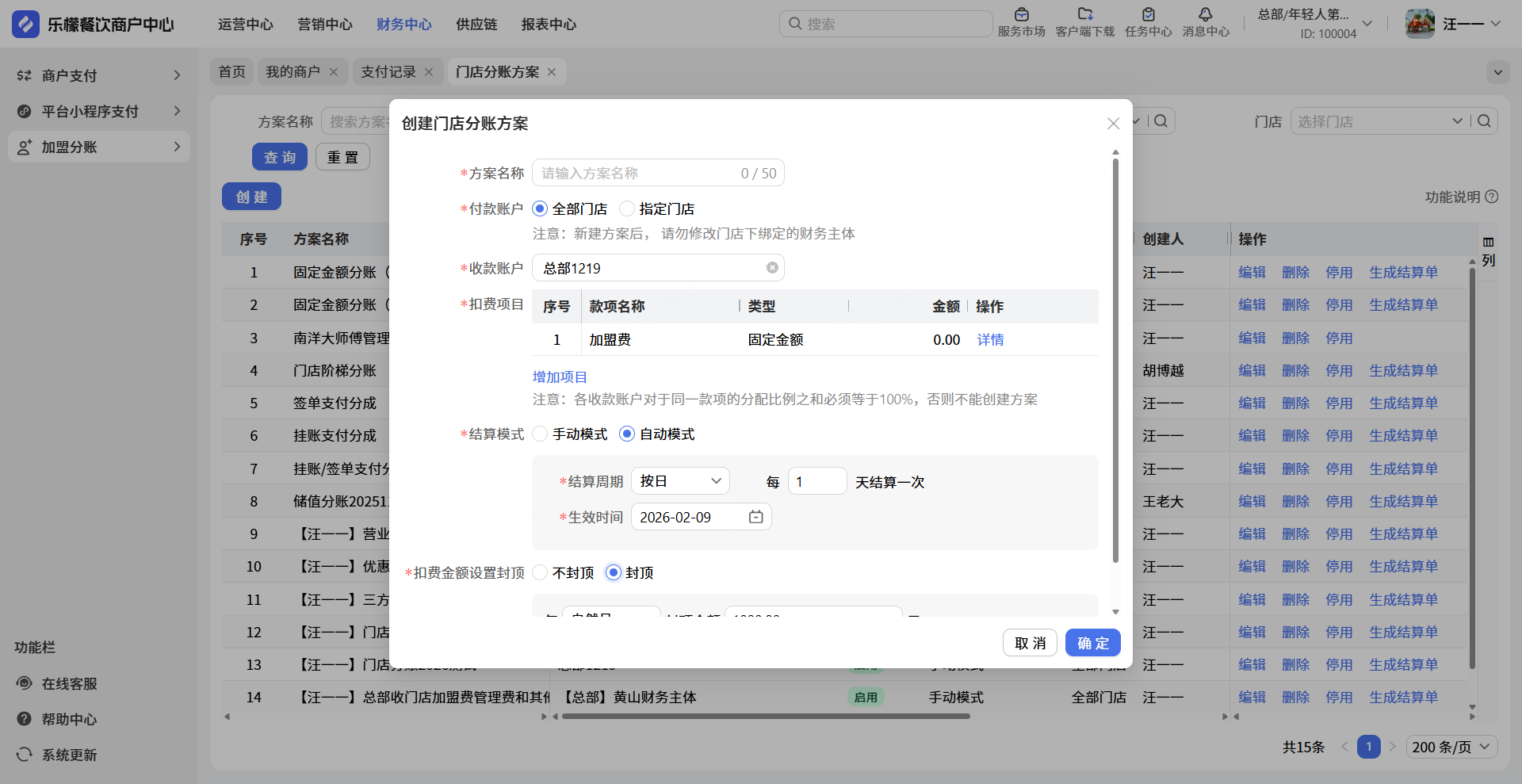 2.门店按照方案生成结算单后,可以跟总部一样,对产生的单子进行结算