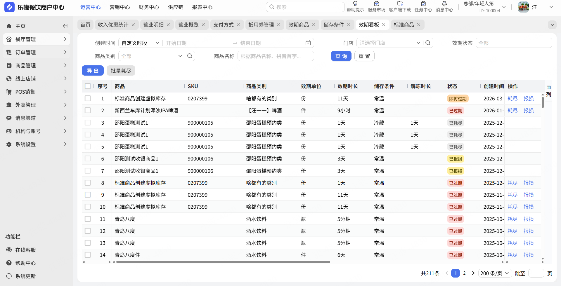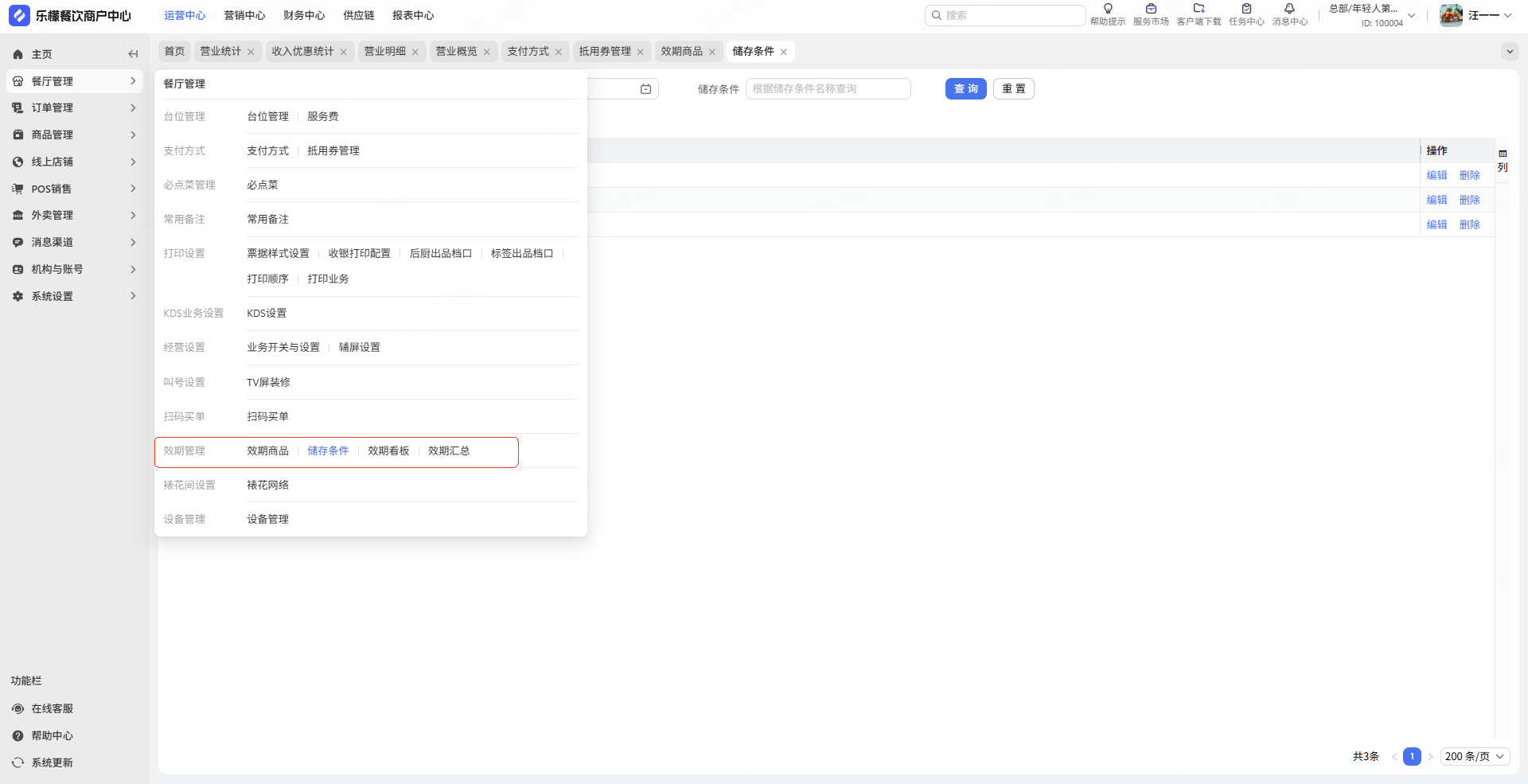 👉【开启路径】:打开【乐檬餐饮商户中心-WEB】,依次点击①运营中心-餐厅管理-②效期管理-③效期看板。