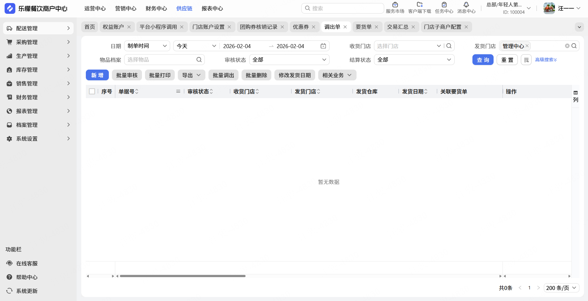 门店向总部要货,总部通过生成调出单进行库存扣减。