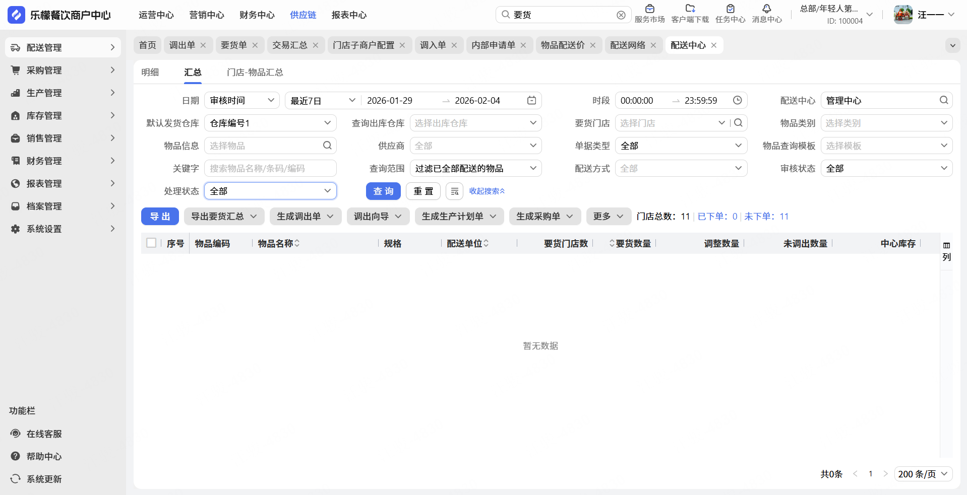 👉【开启路径】:打开【乐檬餐饮-WEB】,依次点击①供应链-②配送管理-③配送中心