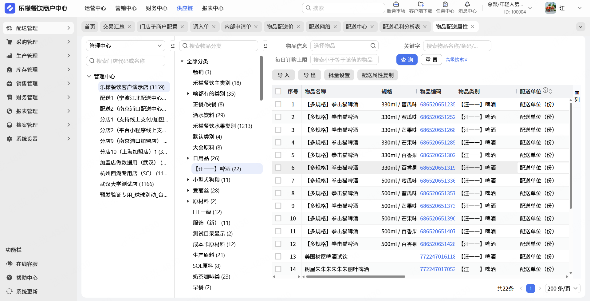 👉【开启路径】:打开【乐檬餐饮商户中心-WEB】,依次点击①供应链-②配送管理-③物品配送属性