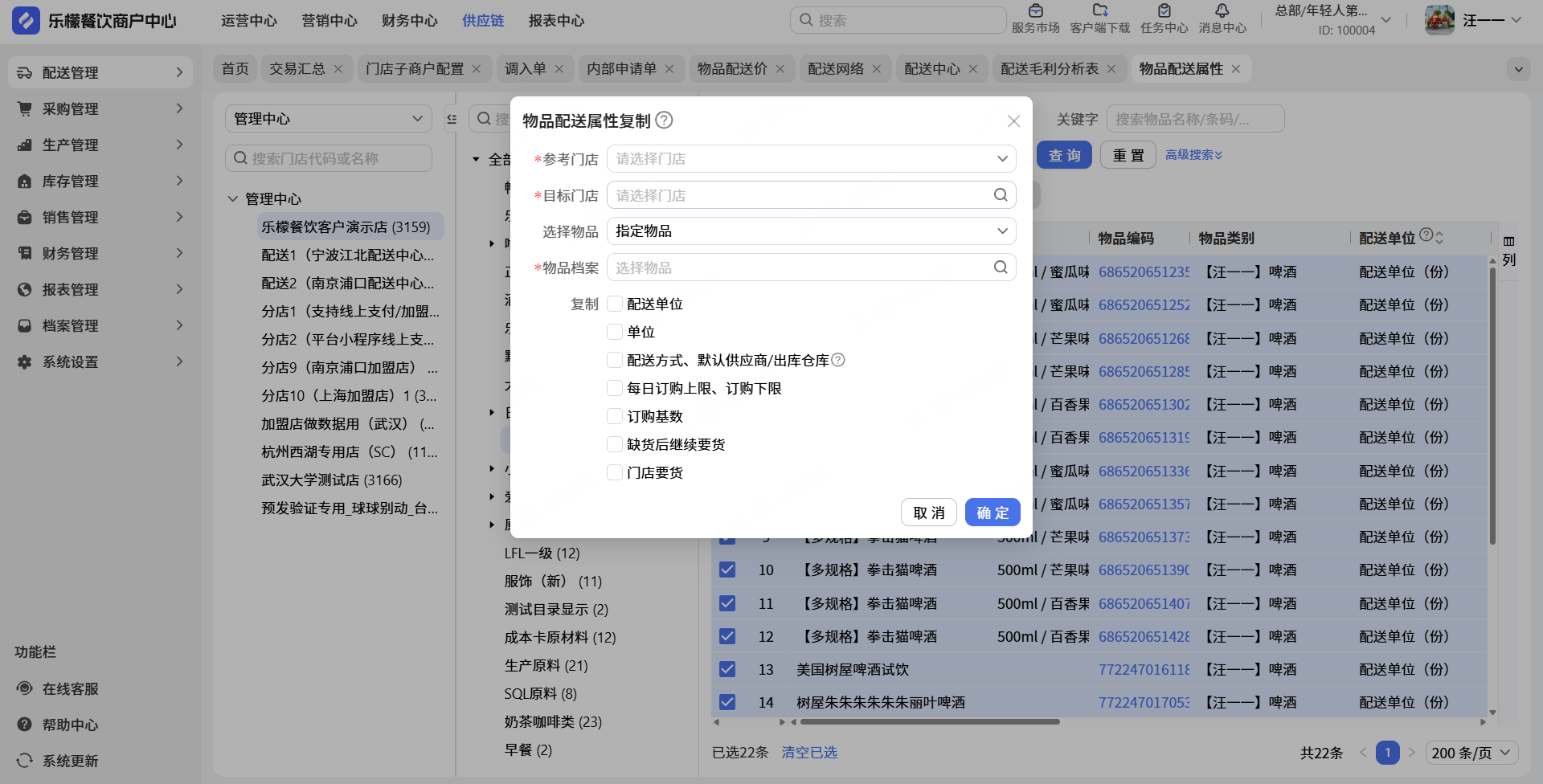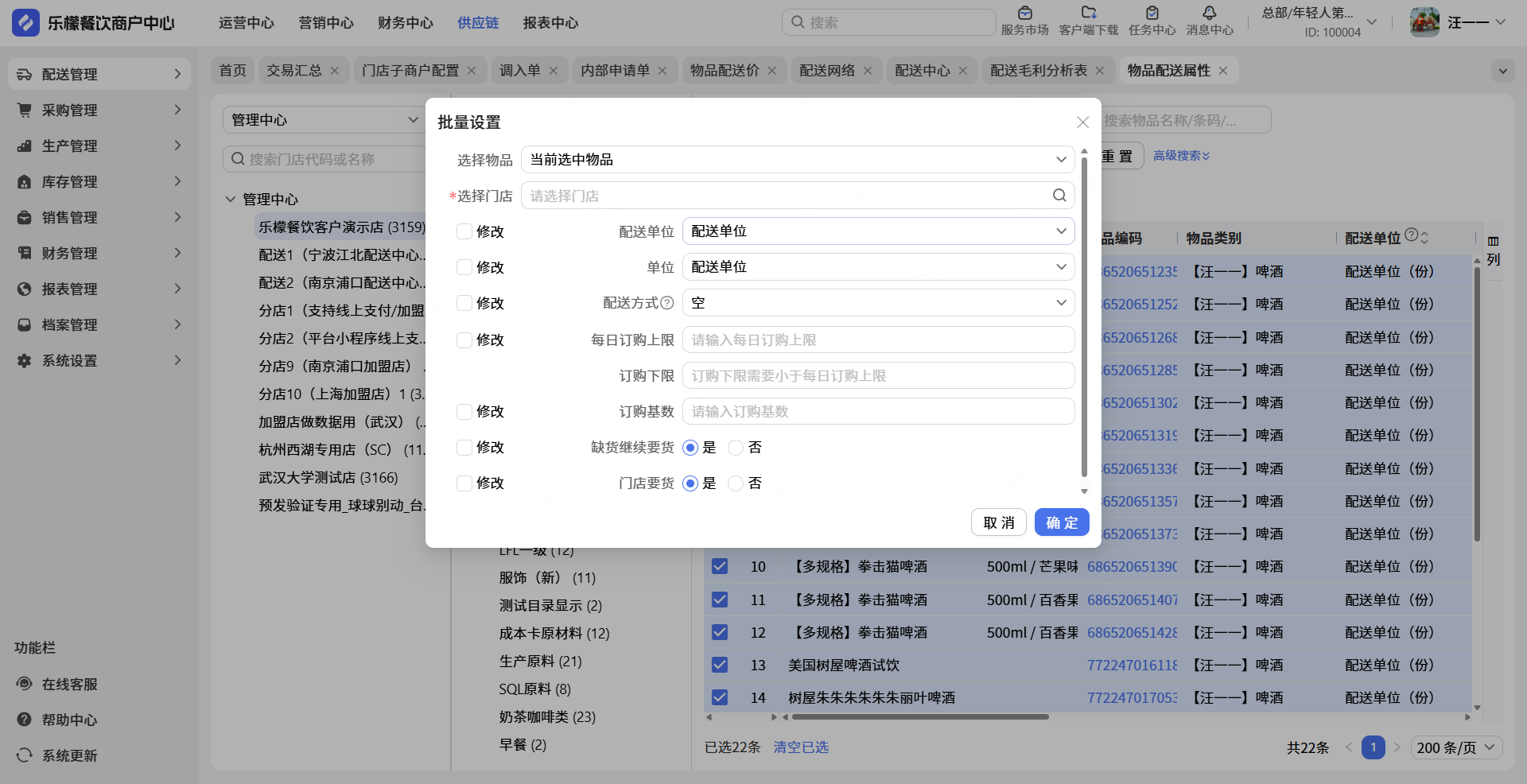 门店要货,对要货数量等进行限制,通过配置商品配送属性完成。