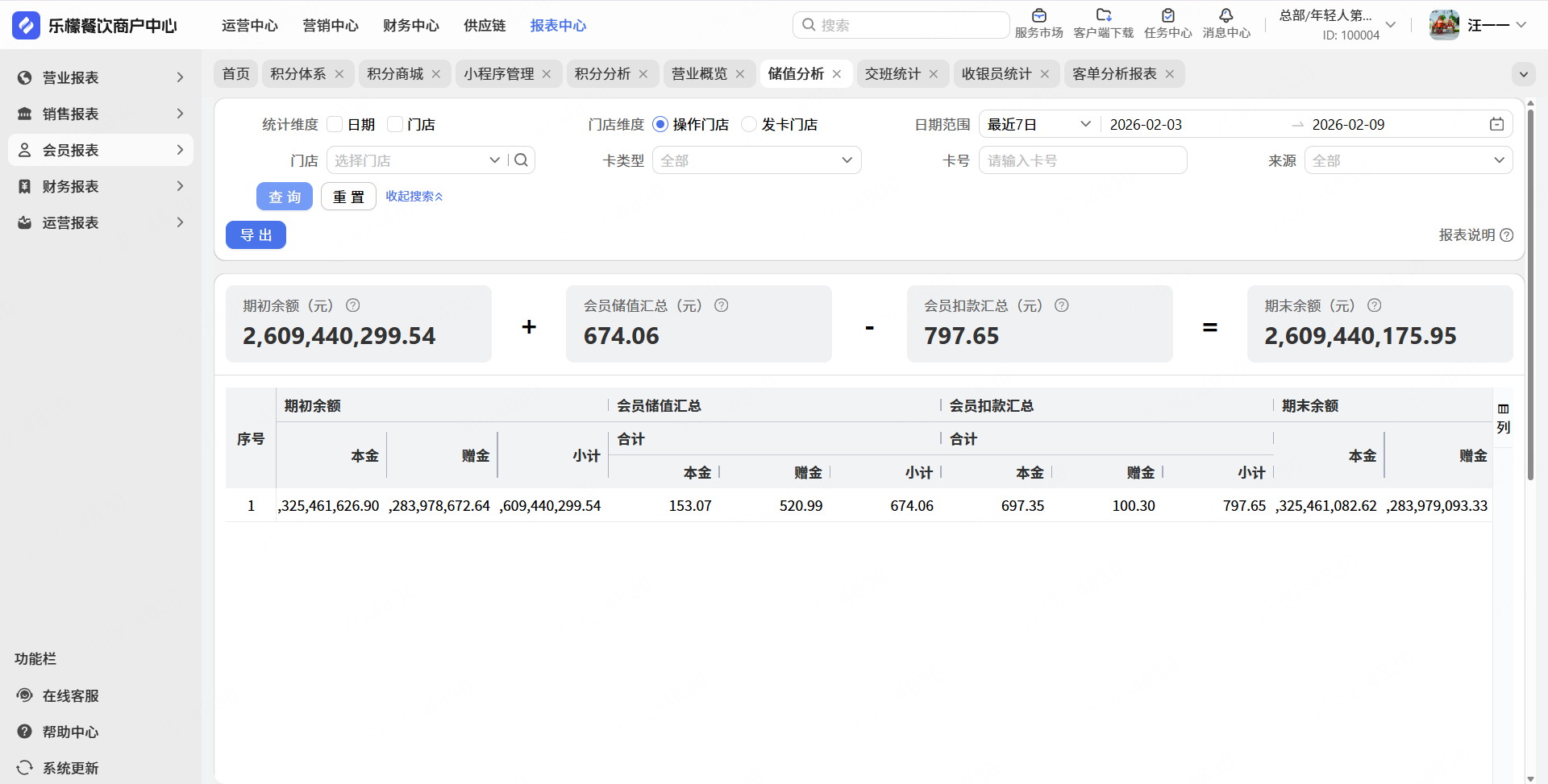 期末余额(元)中展示的就是截止到查询时间所剩余的会员余额