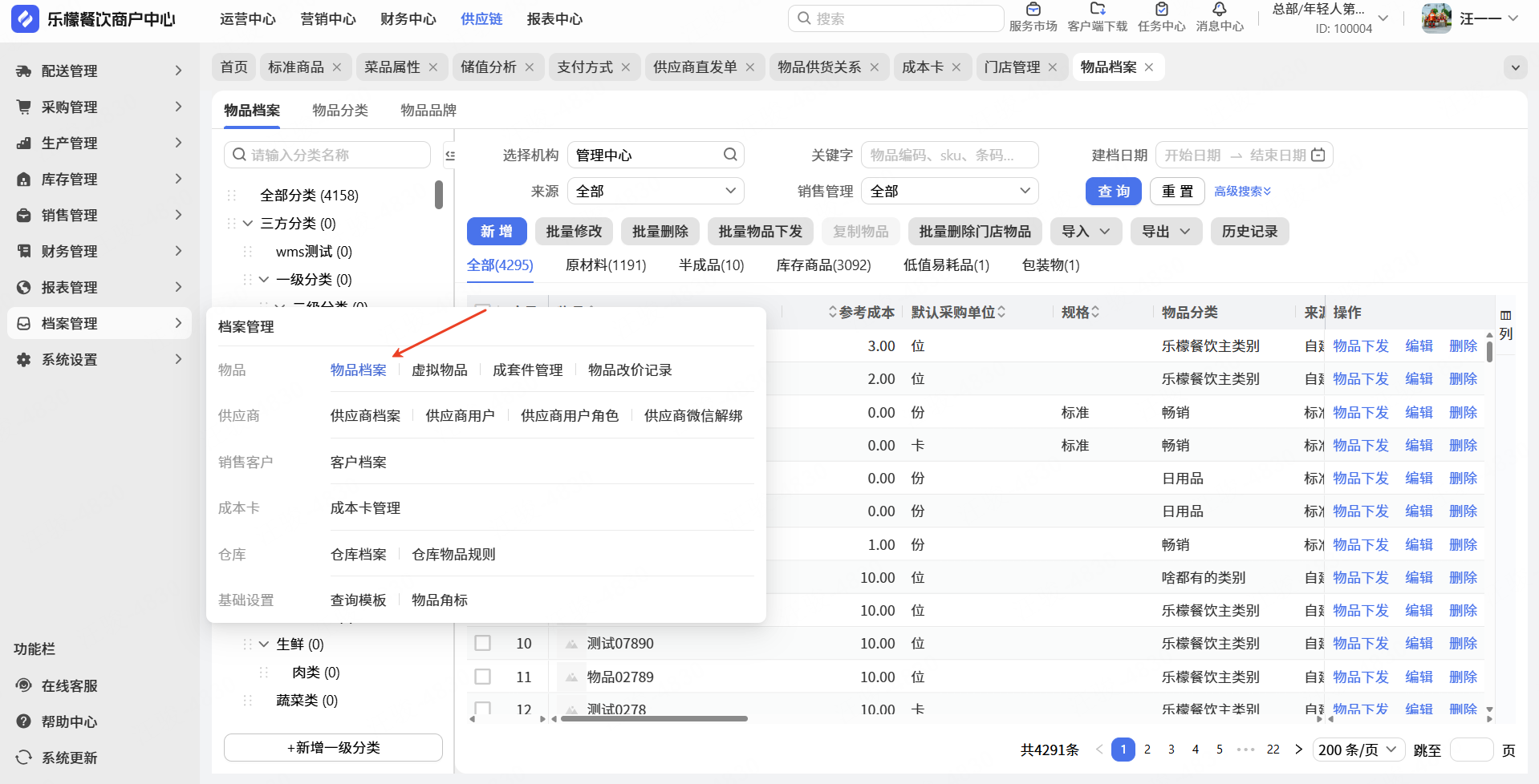 👉【操作路径】:①后台——供应链——档案管理——物品档案