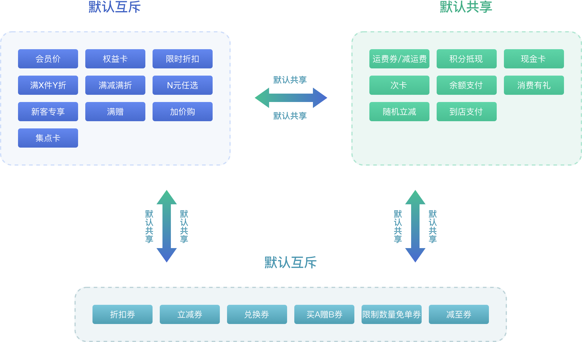 2.系统默认共享互斥规则如下,可根据商家需要,设置共享互斥规则。