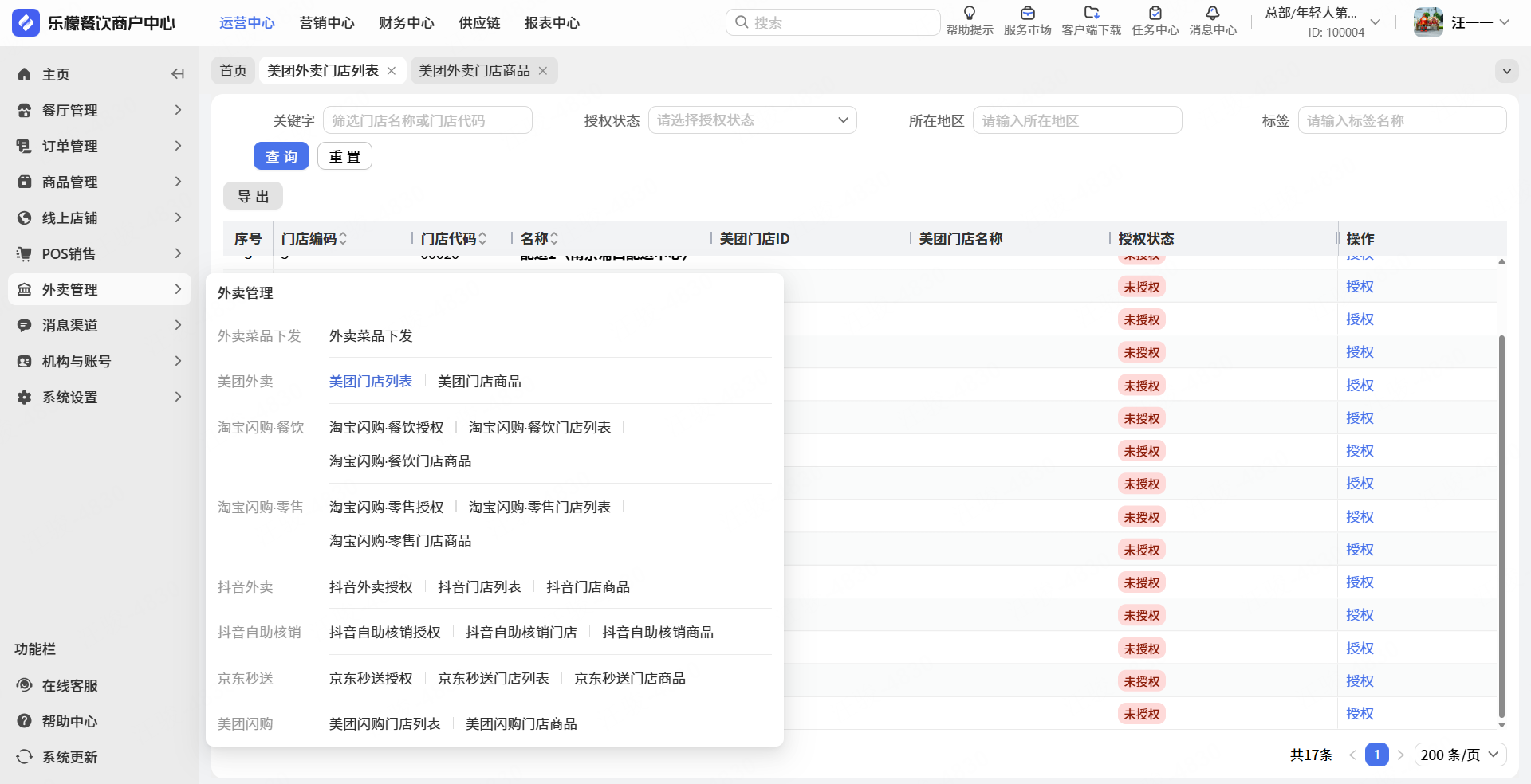 运营中心——外卖管理——美团外卖/淘宝闪购——门店商品中需要关联上两边的商品