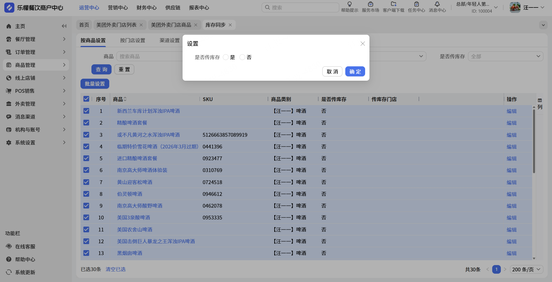 可以按照商品来设置是否传库存,或者是按照门店-商品来进行设置是否传库存