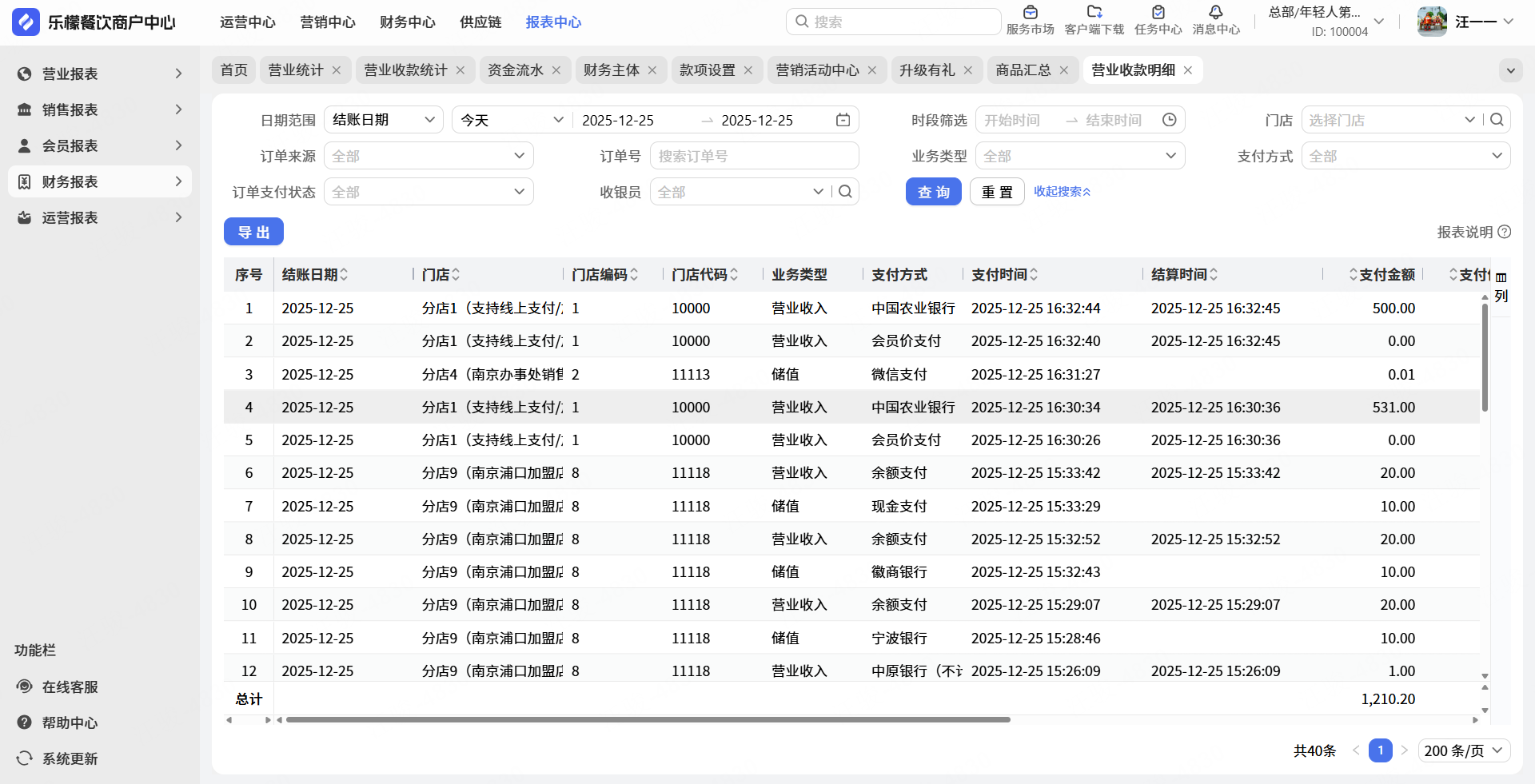3.实收金额:支付金额中算作收入部分的金额。例如余额支付100元(本金80赠金20),则实收金额为80元。