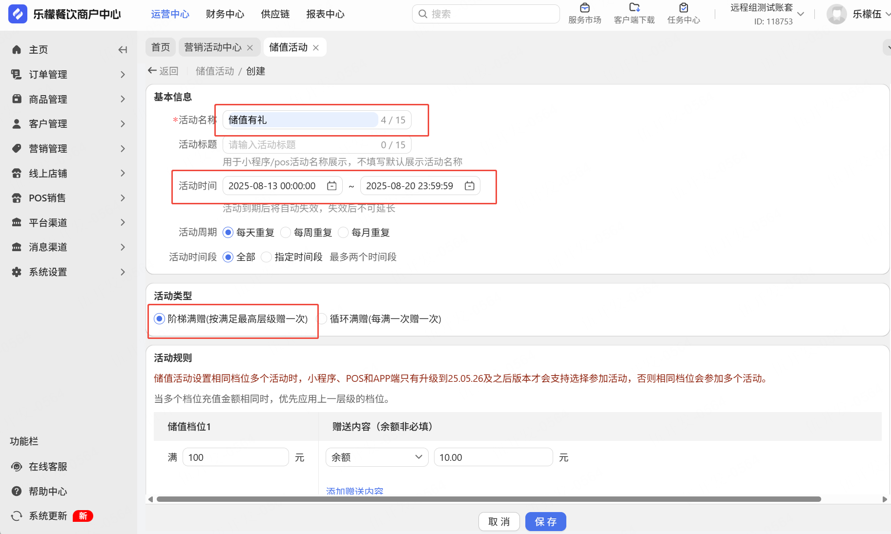 营销管理-管理中心-储值活动-创建储值活动
