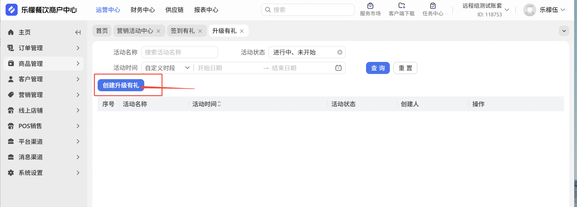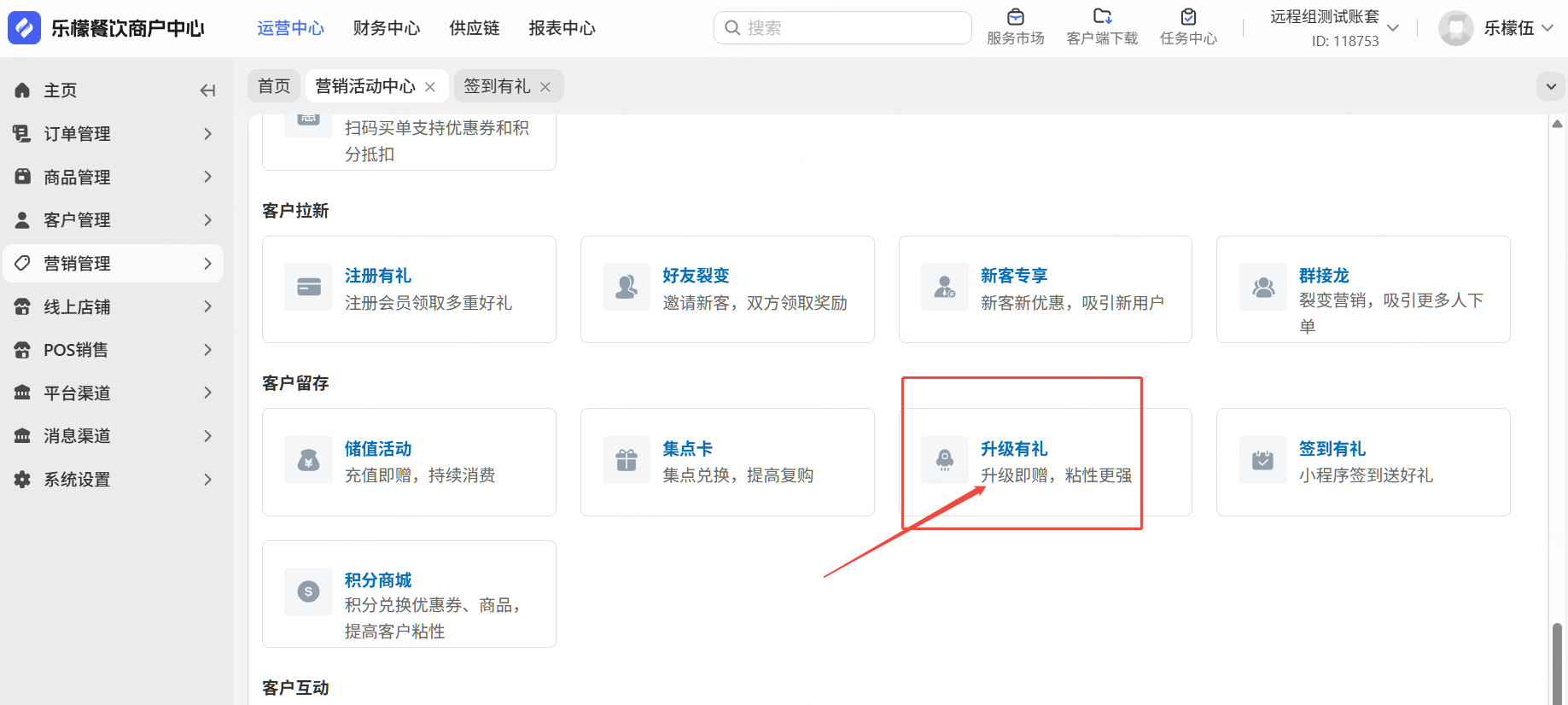 营销管理-营销活动中心-升级有礼-创建升级有礼