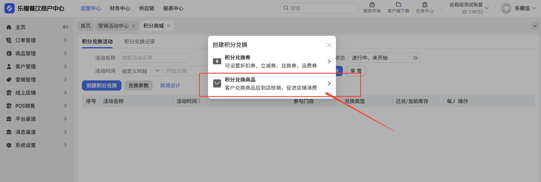 营销管理-管理中心-积分商城-创建积分兑换-积分兑换商品