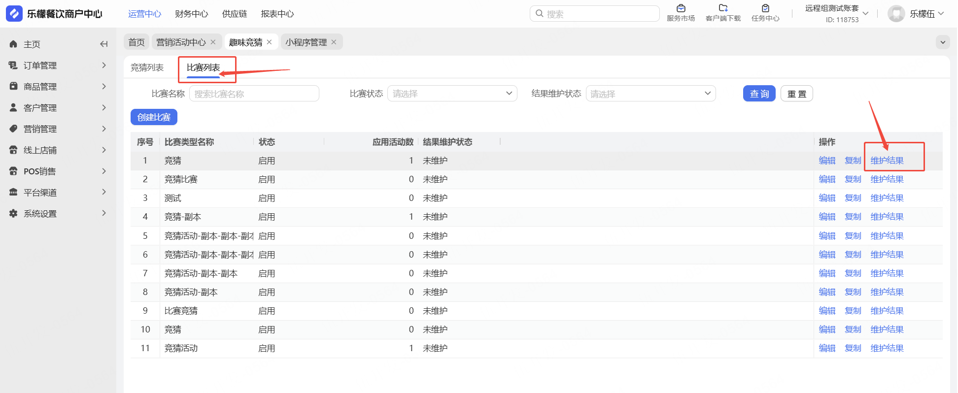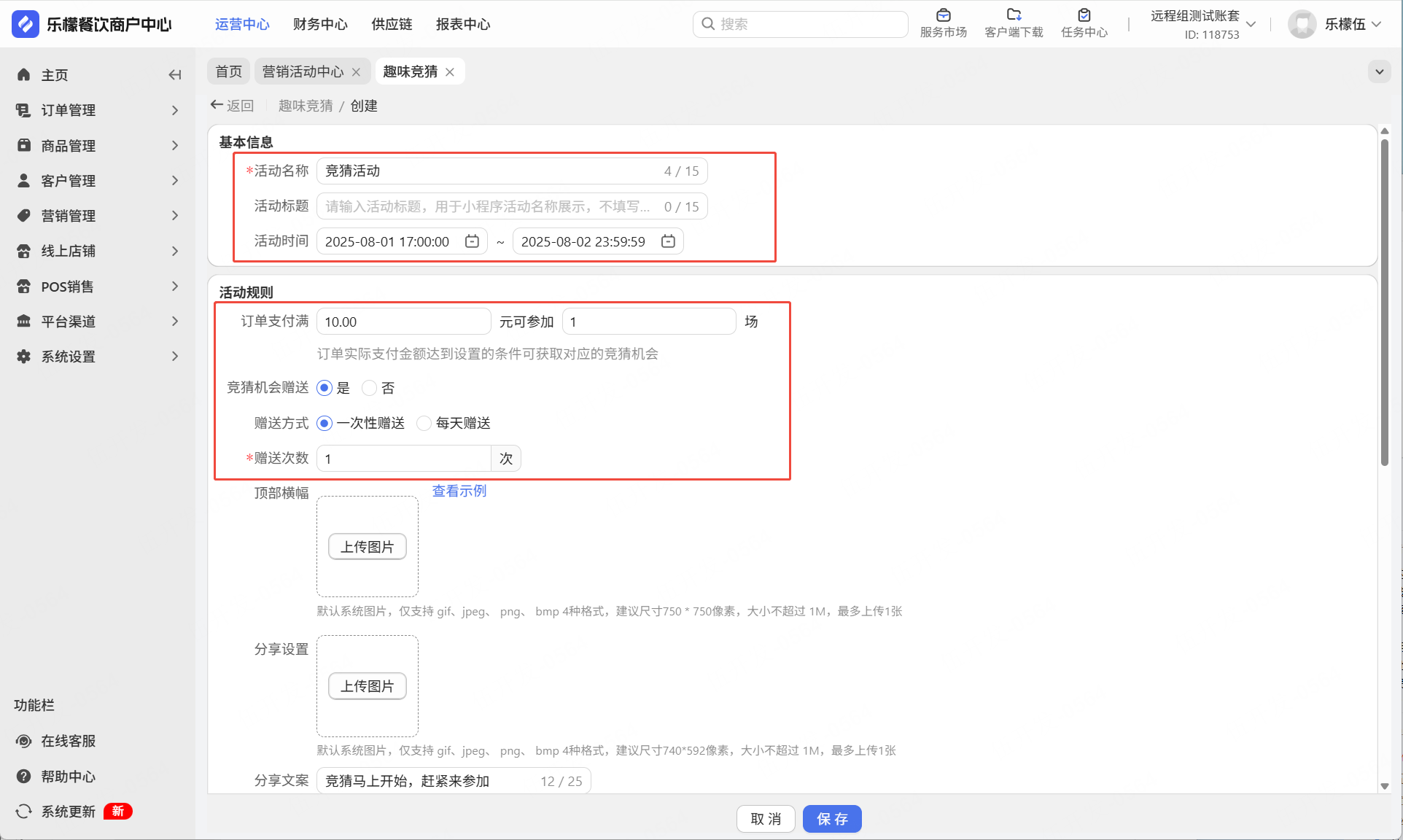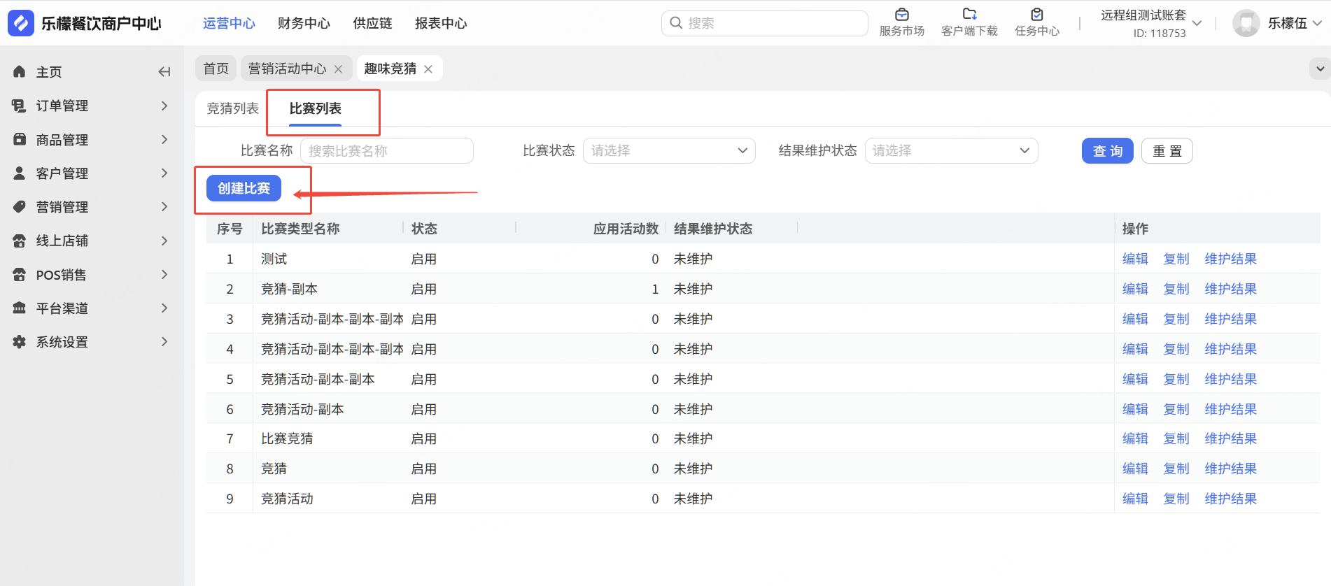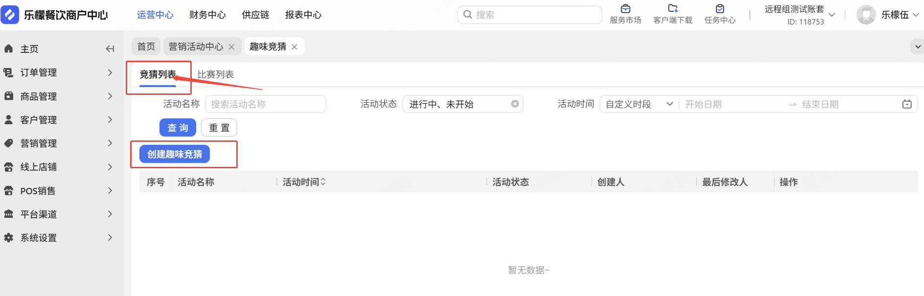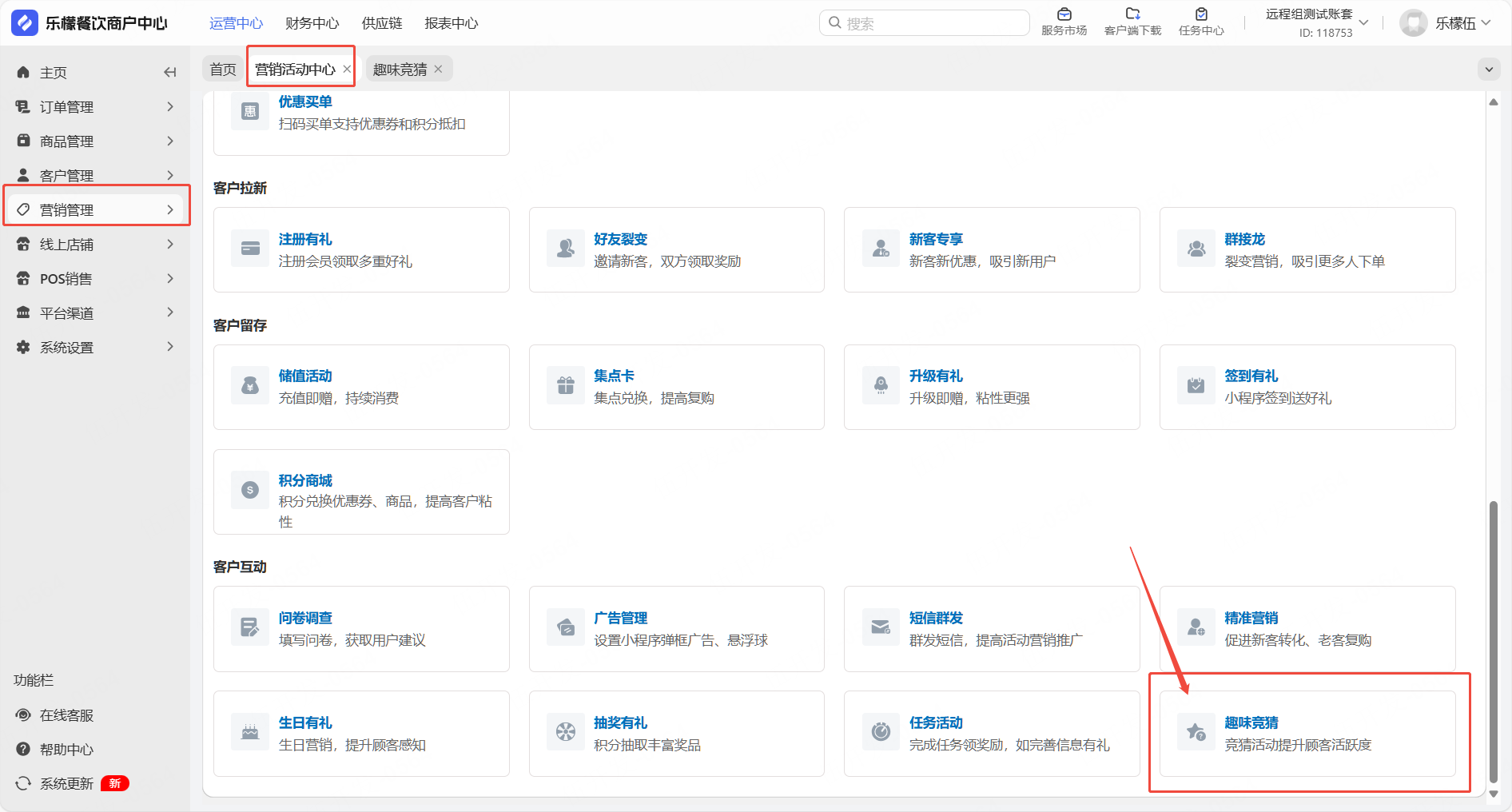 操作路径:网页-营销管理-营销活动中心-趣味竞猜