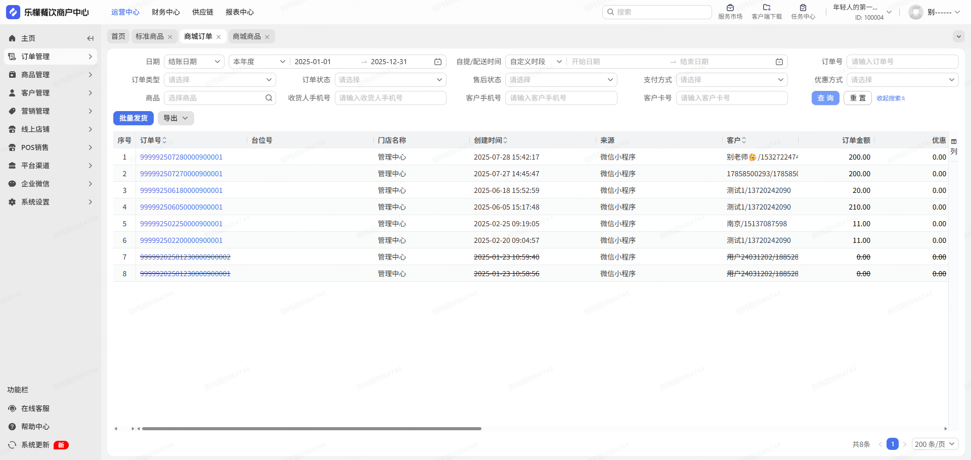 👉【操作路径】:打开【乐檬餐饮商户中心】,依次点击:①订单管理-②商城订单