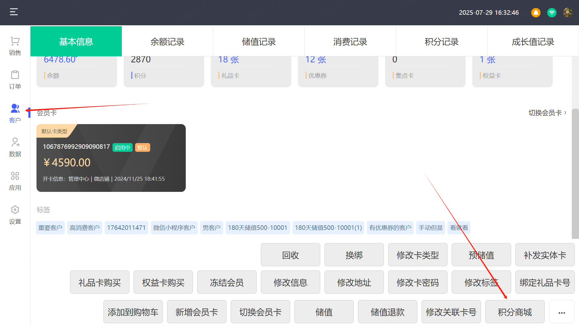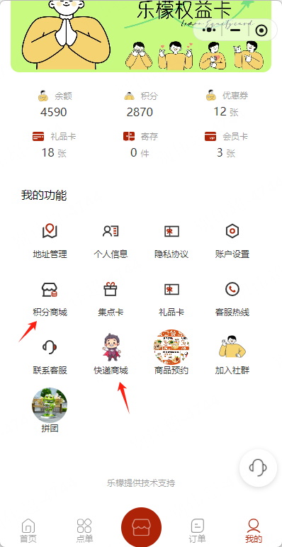 小程序端积分兑换和积分商城可在小程序装修自定义入口链接,例如: