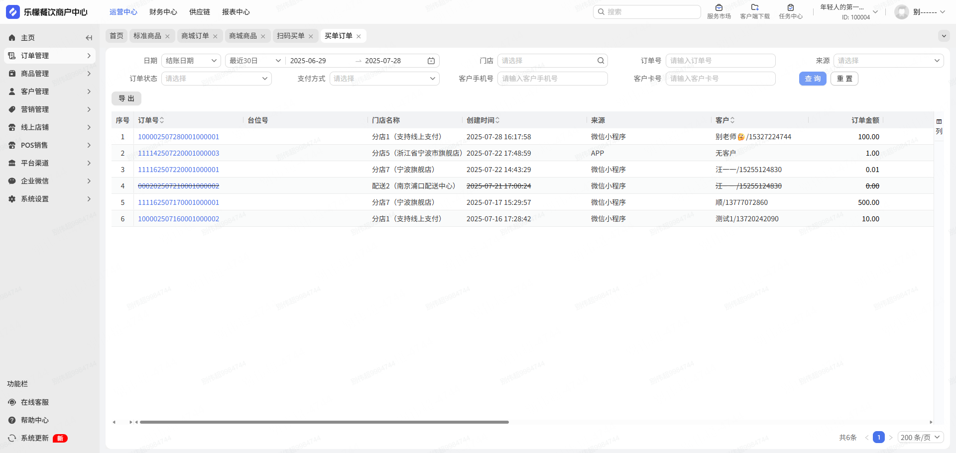 👉【操作路径】:打开【乐檬餐饮商户中心】,依次点击:①订单管理-②买单订单