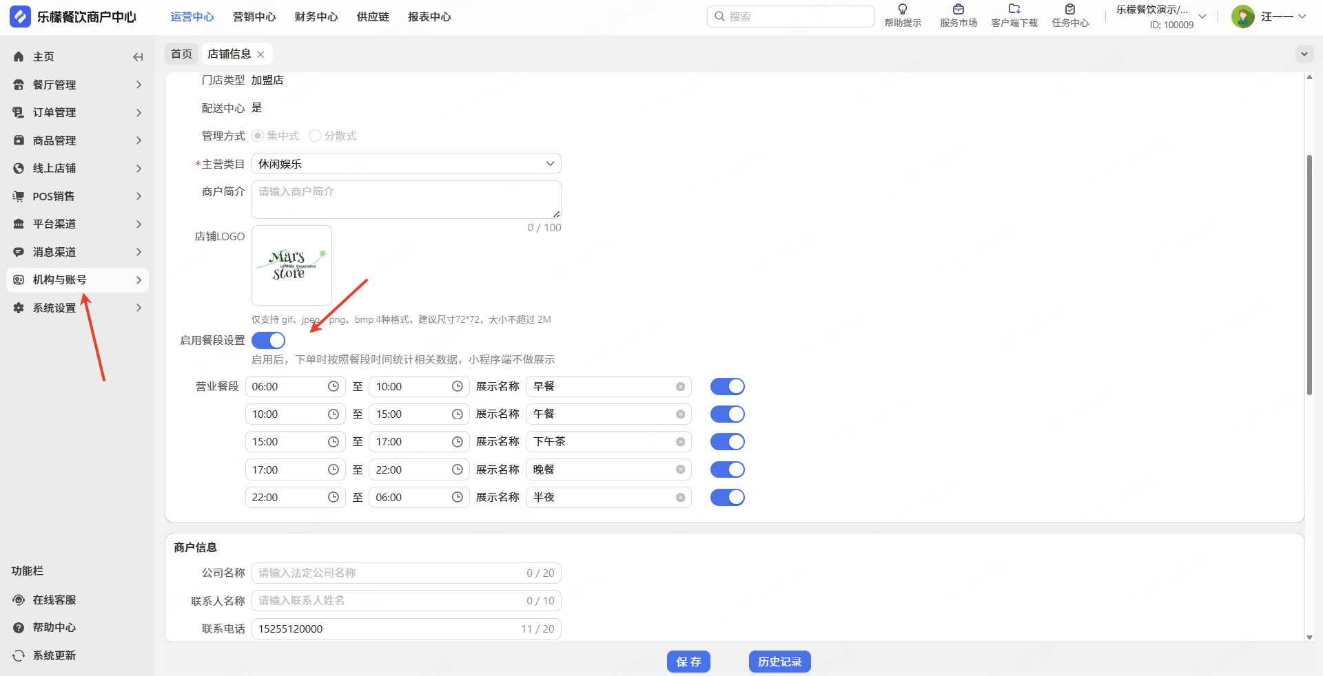 1.统计间隔如果选择餐段,需要网页端【机构与账号】-【店铺信息】中开启餐段设置。