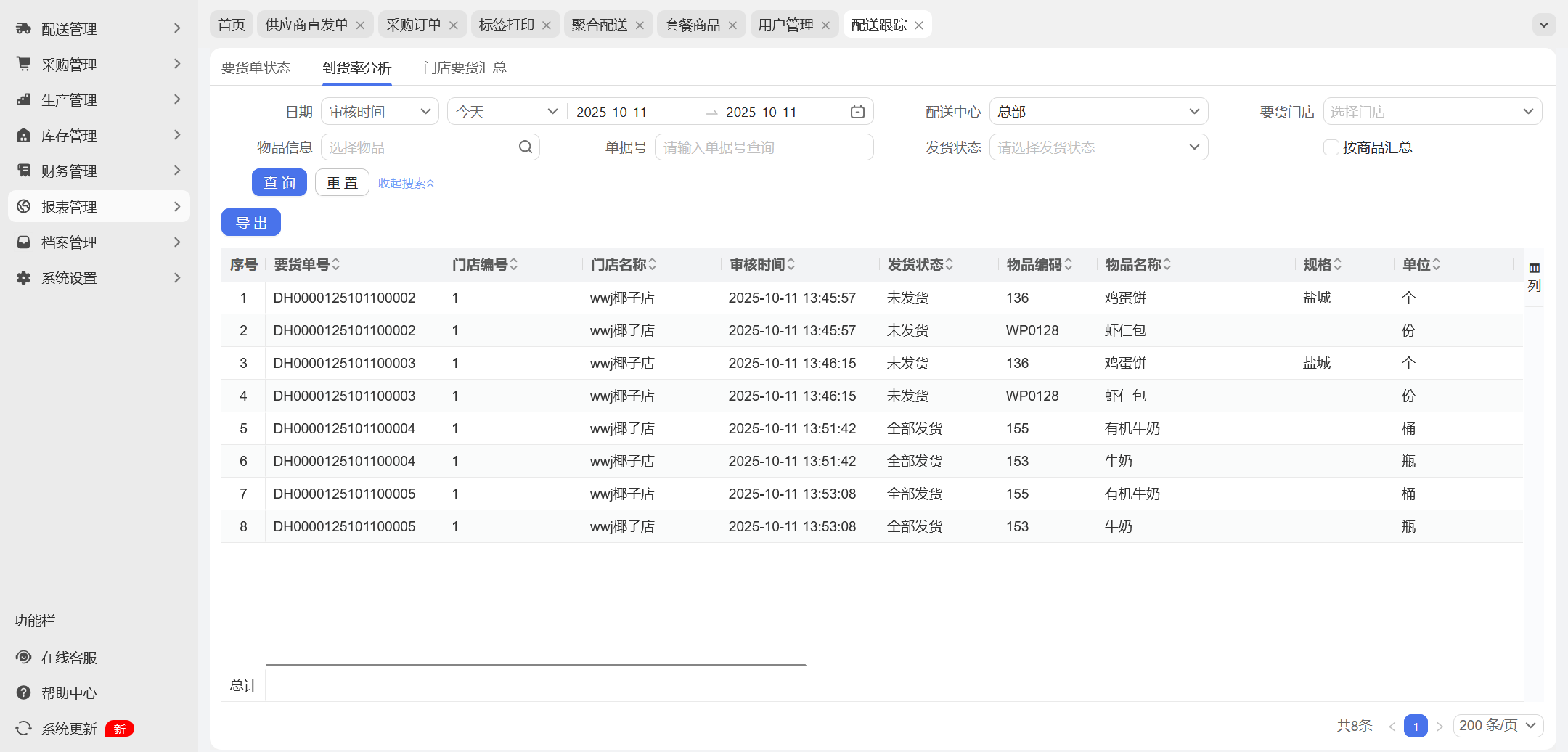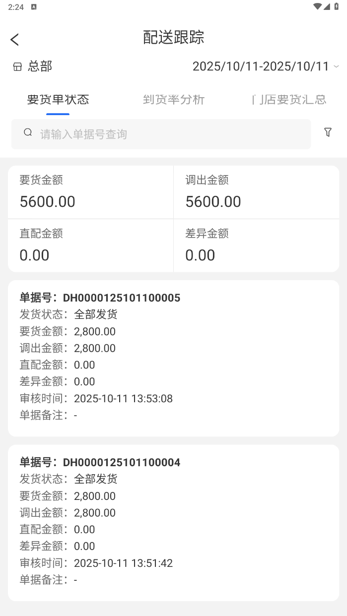 连锁店门店要货后,门店及总部需要快速获知要货与发货的差异部分