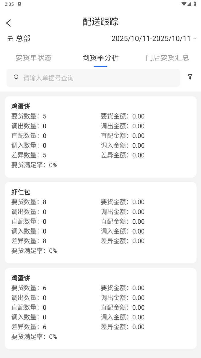 要货率分析,可查询要货单内物品要货数量/金额,发货数量/金额的数据与差异