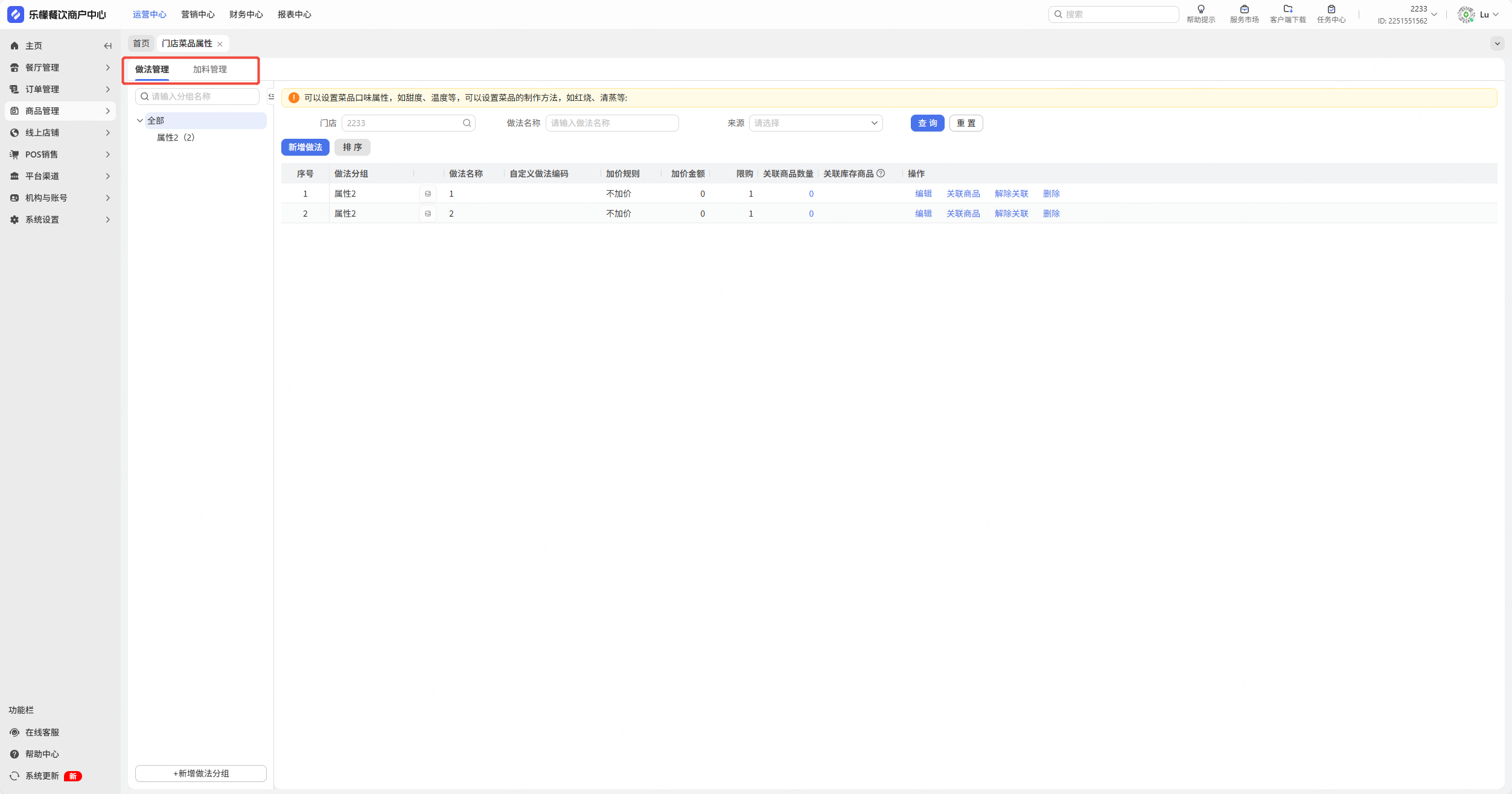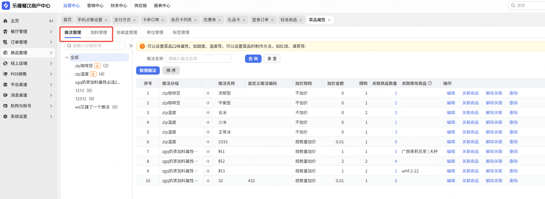 原属性管理,调整为做法管理和加料管理,数据同web端同步。