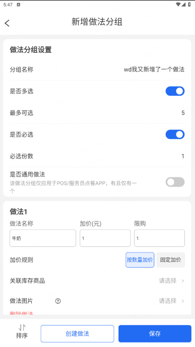 通用做法:该做法分组仅应用于POS/服务员点餐APP,有且仅有一个;