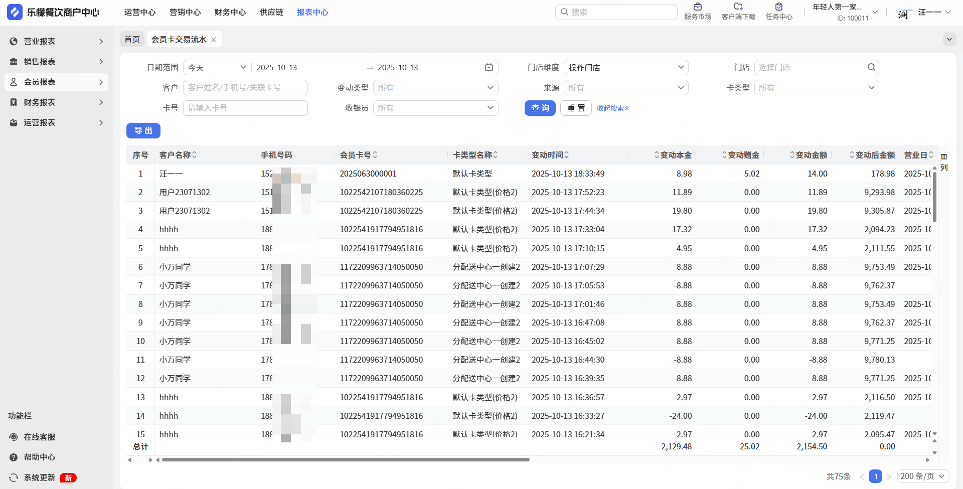 1.会员卡交易流水包括会员储值明细和会员扣款记录。