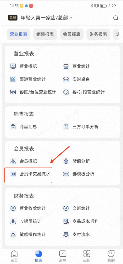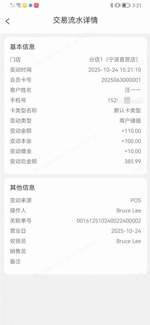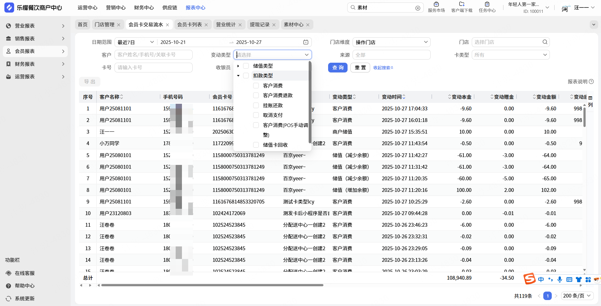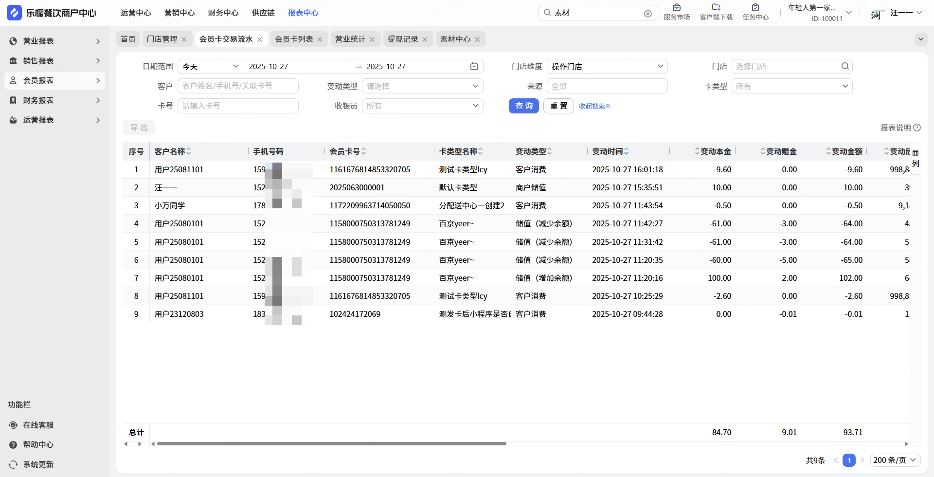 增加会员卡流水明细报表,方便商家查看有关会员卡余额的所有变动。