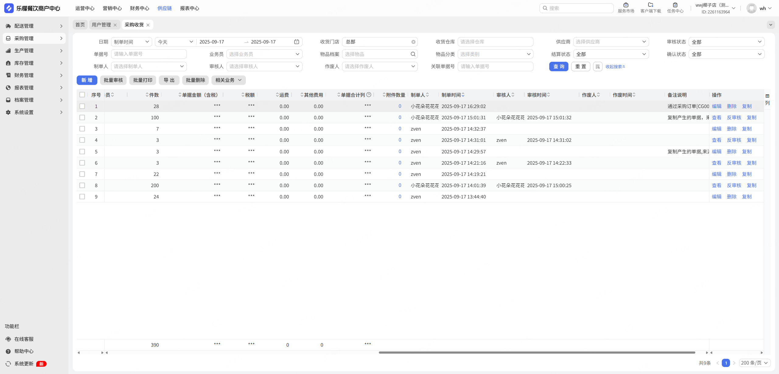收货单单价查询/编辑权限:收货单,单价(含税),金额(含税),采购单价(不含税),金额(不含税),税额,基本单价及对应数据的合计
